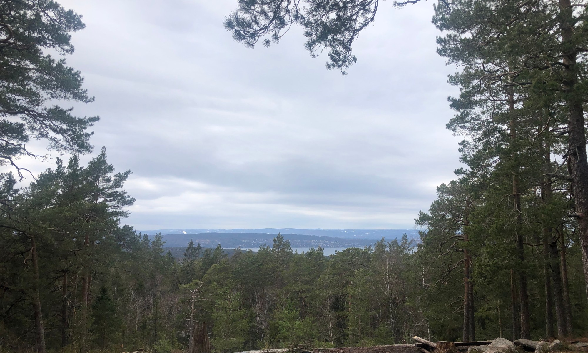 Startet turen i dag fra Bjørnerud, på stier som var blitt harde av nattefrosten. Tok av fra blåstien etterhvert og fulgte en umerket sti. Fin sti det også og mindre folk. Det er ikke lange turen ut til Branntårnet på sørenden av Grønnliåsen.