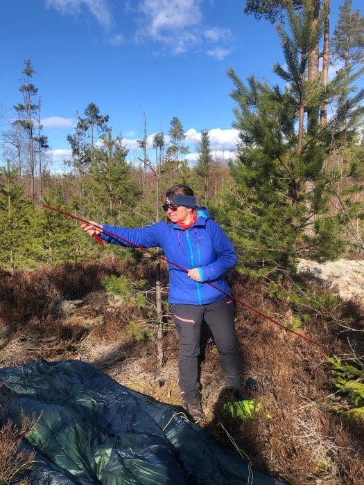 Kom litt sent i gang i dag, men etter noen kilometer på delvis tørr sti har turvenninne Gry og jeg slått leir på en ås mellom Lyseren og Øyern i Viken.