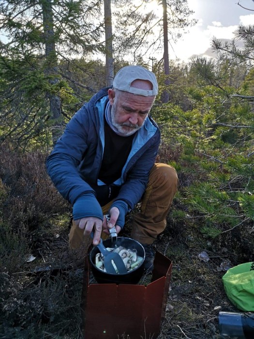 Det smakte godt med reinskav, sopp, løk og lefser etter gåturen.