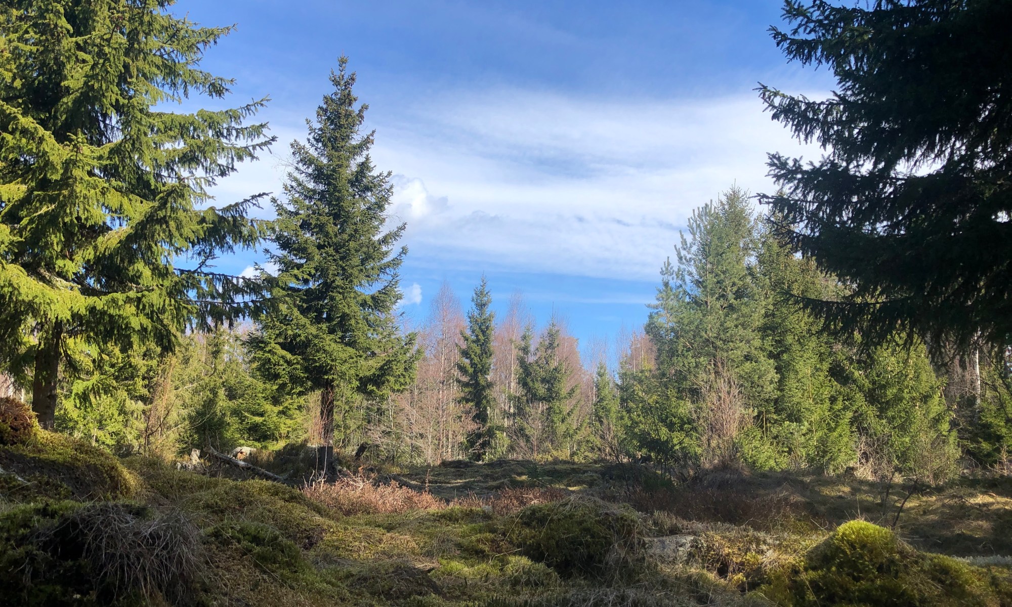 Solplassen ligger rett ved en gammel skog, og det ble fine turer inn i den.