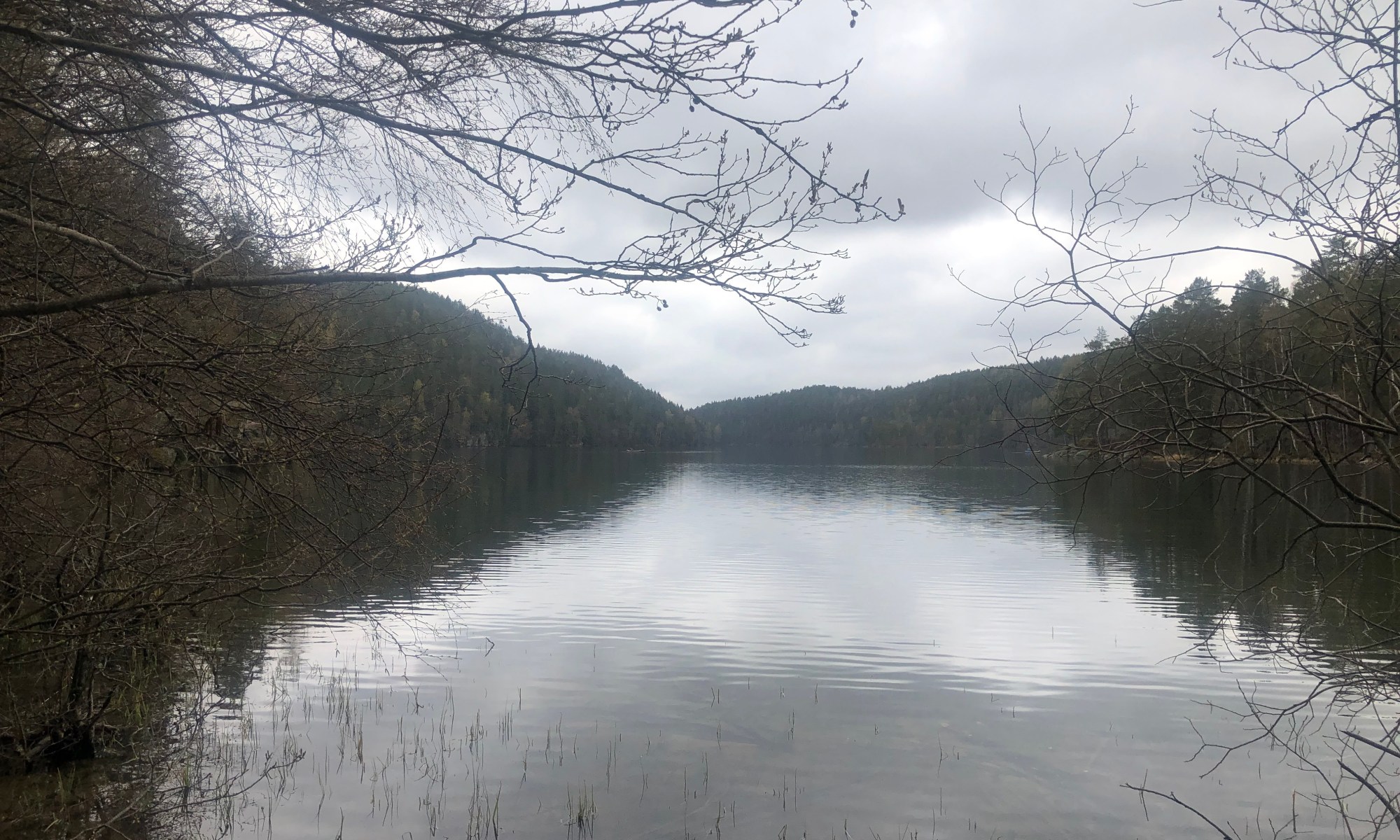 Fra Haukåsen fulgte jeg stien forbi Ulvenseter og Lauvtjernmåsan og ned til Lutvann, som lå der speilblankt i dag.
