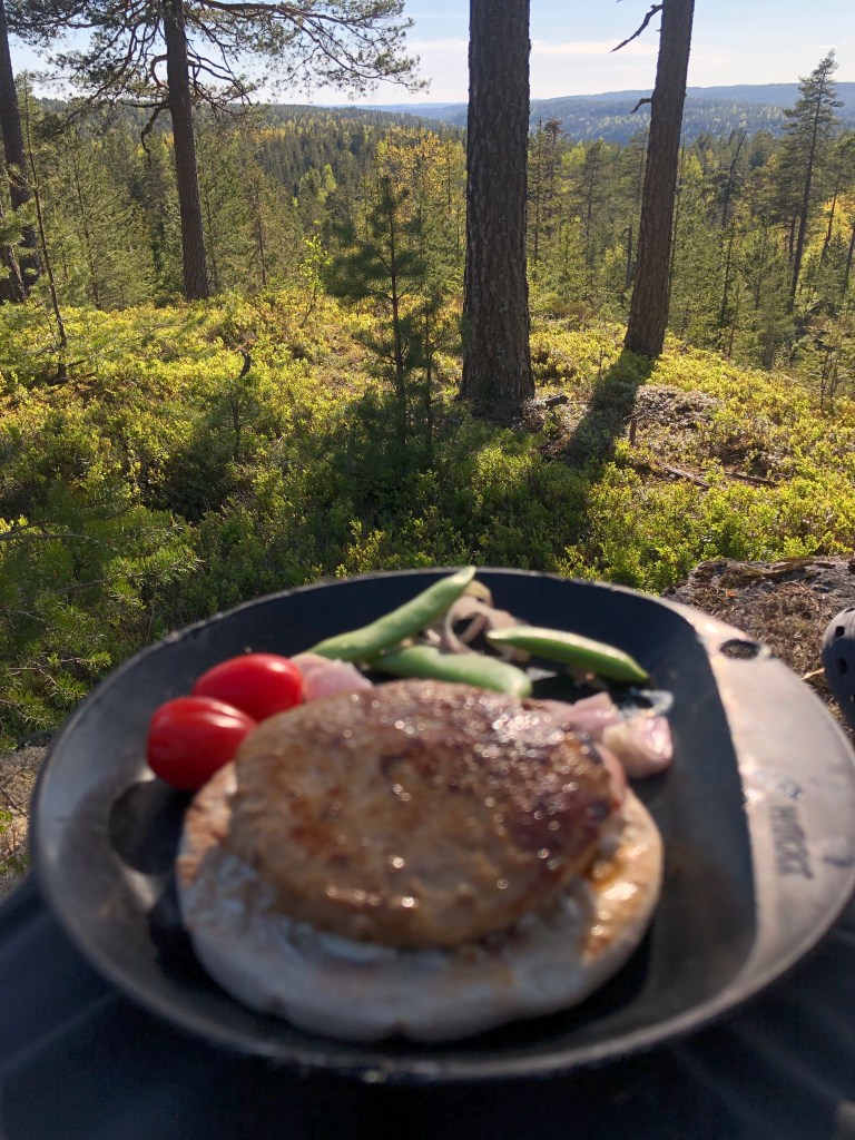 Tilbake ved teltet var det tid for litt mat, og det det smakte utmerket med fjellgrisburger fra Stølsvidda i Valdres.