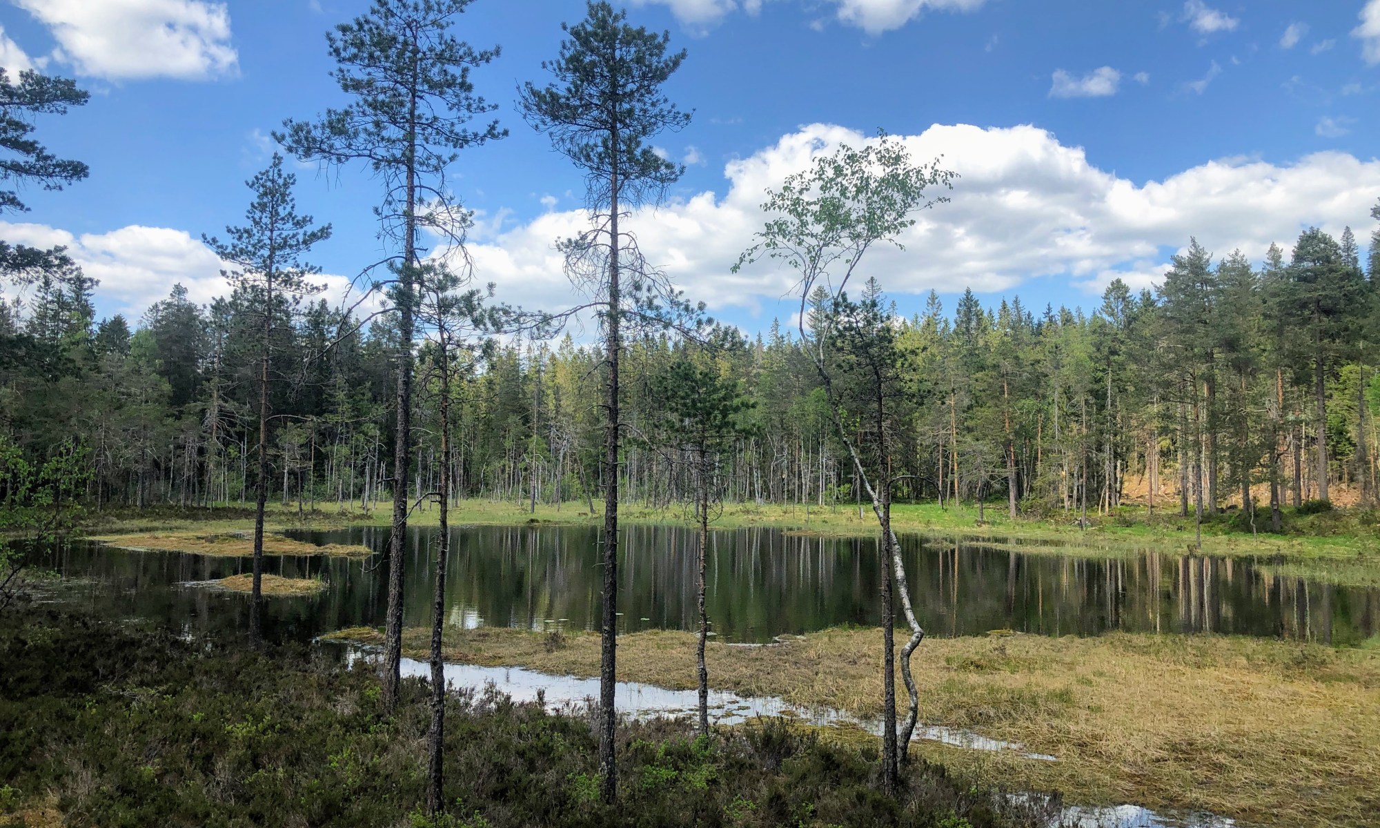Fra Sinober fulgte jeg stien en stykke i retning Solemskogen, men etter et stopp på en fint utsiktspunkt mellom Granberget og Holåsen tok jeg av til Vennervann og «styrketreet», et tre jeg har skrevet mye om tidligere.