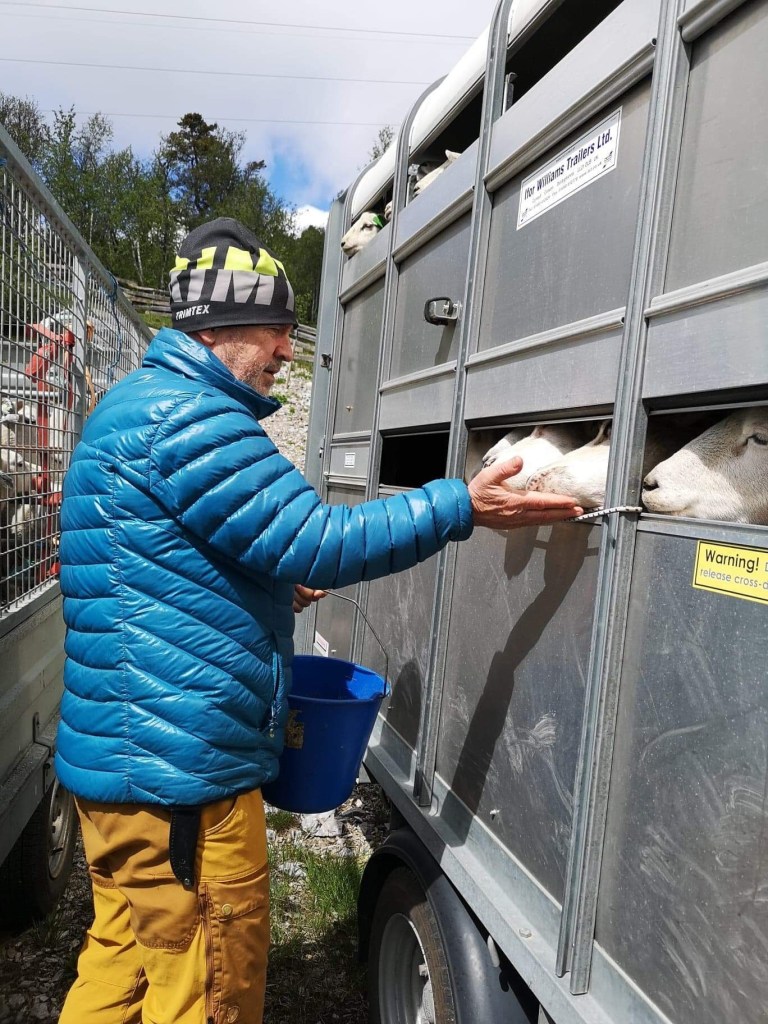 Selv fikk jeg gleden av å gå med «lokkebøtte» med kraftfôr foran sauene, mens de 2 andre og Gry gikk bakerst inn til støylen ved Kyrelitjønn. Derfra gikk de firbente videre i fri utfoldelse.