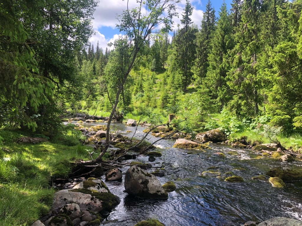 Har tråkket i en del myrområder, og krysset et par elver. Ble litt våt i den ene, men det tørker fort.