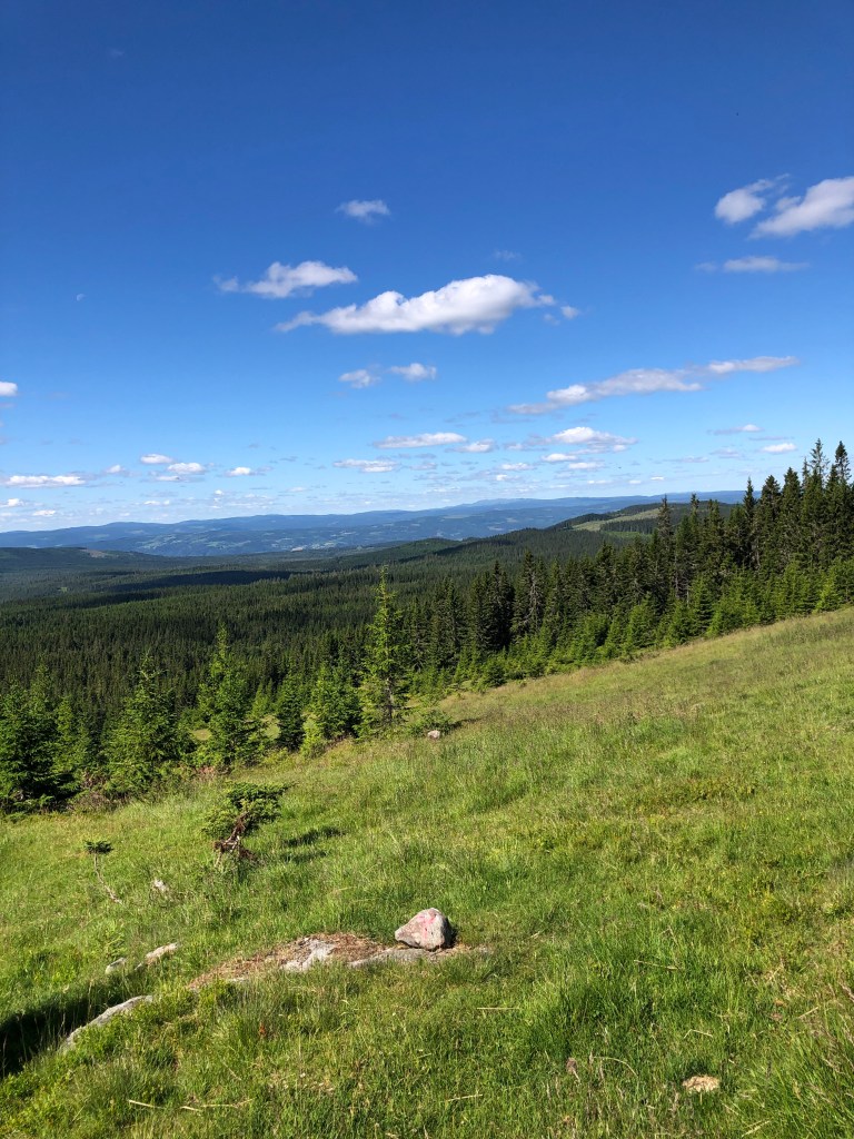 På dagens etappe fra Sjusjøen gikk jeg i mye skog, og tidvis på veldig bløt og gjørmete sti, en innimellom hadde jeg fantastisk utsikt.
