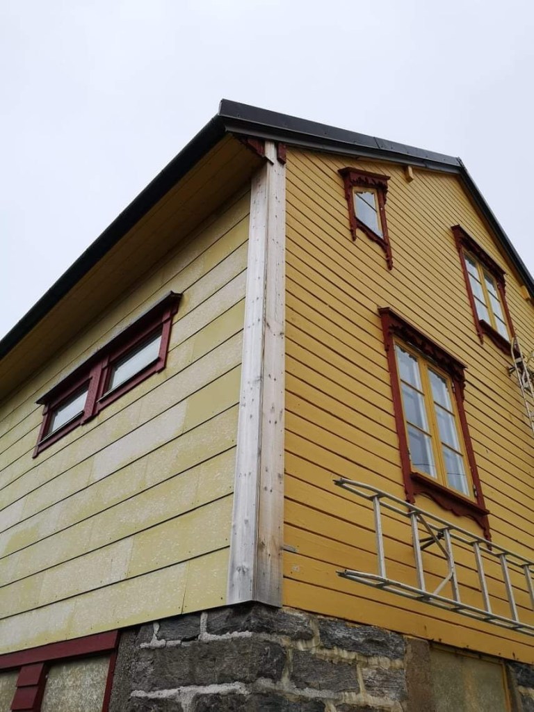 Det er nok værhardt der ute, og de fleste husene hadde plater på den ene siden og bordkledning på sidene som ikke er så værutsatt.
