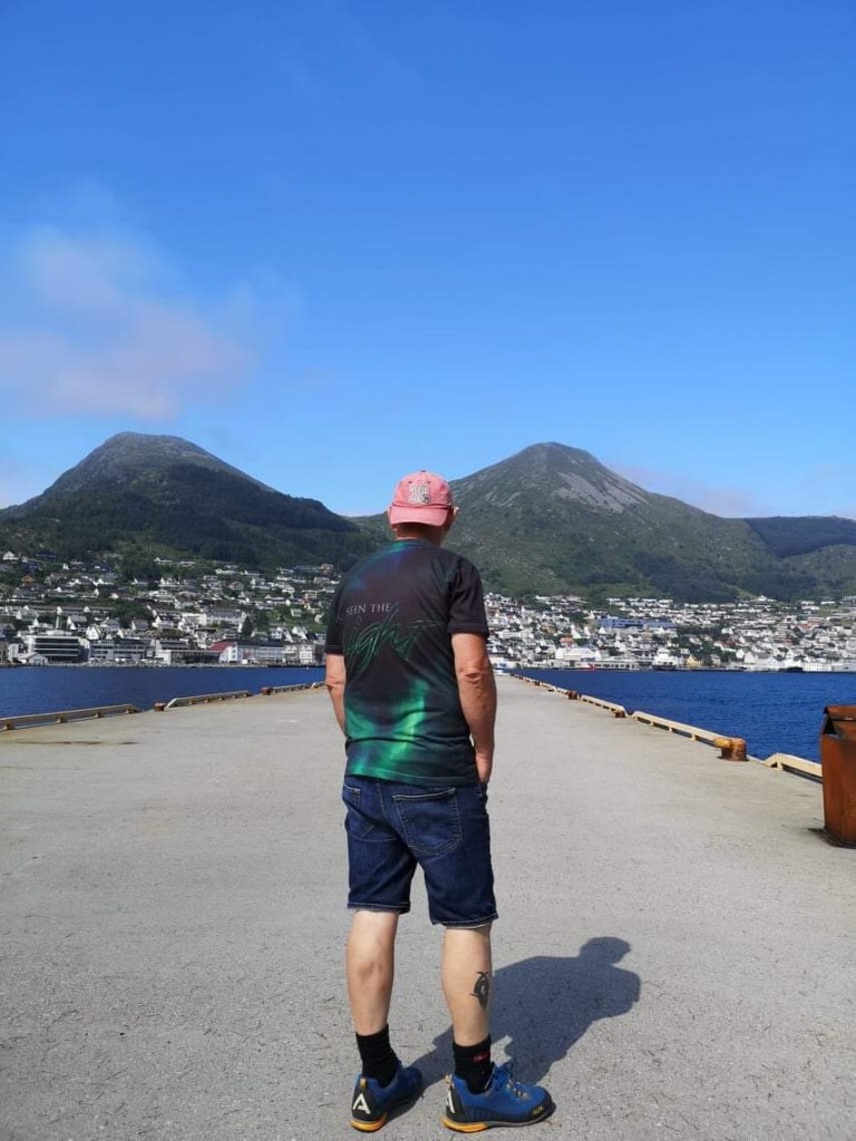 Vi dro tidlig fra Sæbø i strålende vær, og tok et lite kaffestopp i Grodås ved Hornindalsvatnet. Neste stopp ble Måløy, mitt fødested.
