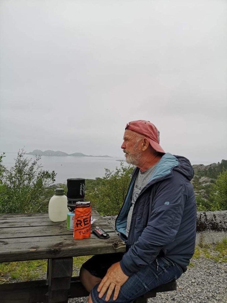 Etter turen smakte det godt med real turmat med utsikt utover havet, og øya Silda.