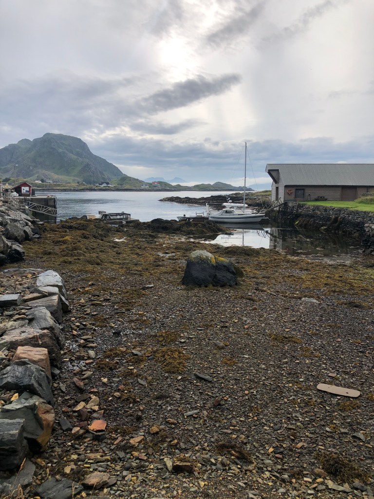 Der ute var det skikkelig forskjell på flo og fjære. Bildet over er fra da vi kom, og det under fra da vi dro.