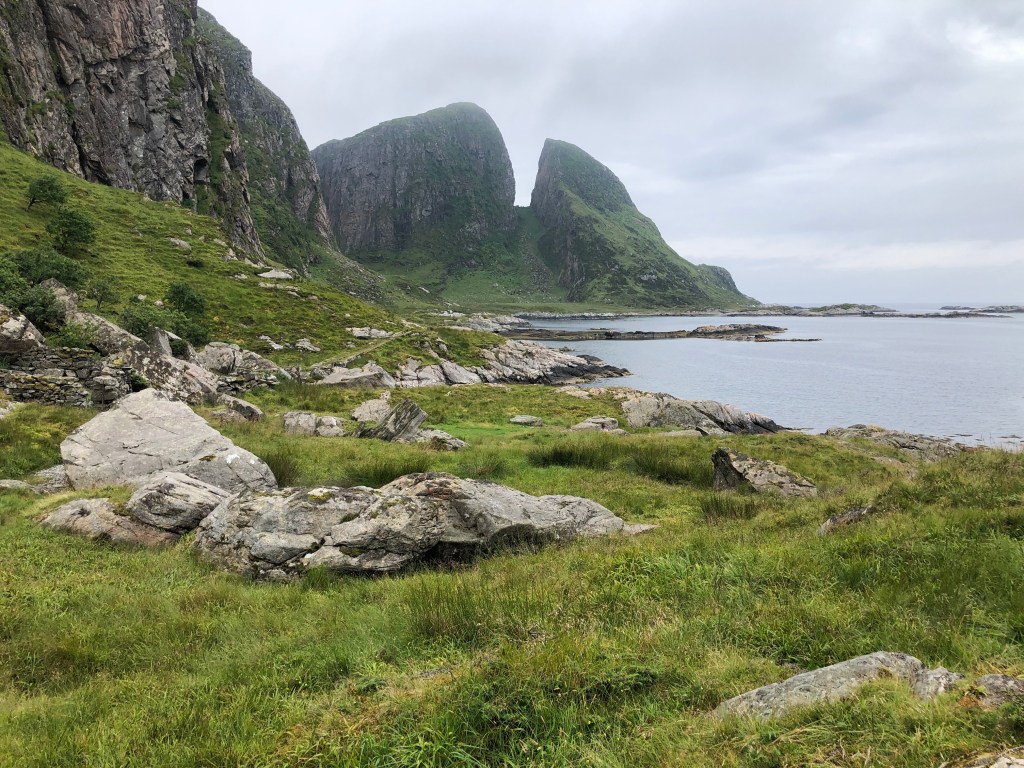 Kinn er ikke store øya. Den er ca 2 km bred og 2 km lang, og høyeste punkt på er 315 moh. På den en siden av øya er det noen gamle hus og naust, som jeg antar blir brukt i sommerhalvåret.