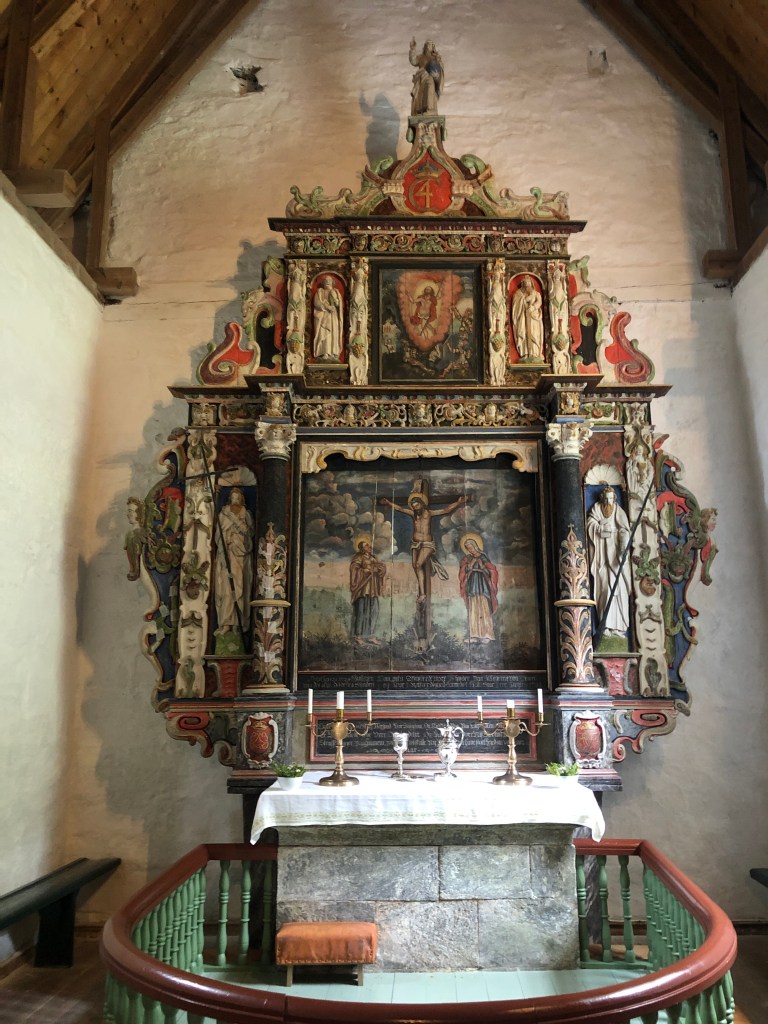 Nordvest på øya ligger Kinn kirke inntil de bratte fjellsidene. Den har vært i bruk siden 1100-tallet, og er fortsatt i bruk på spesielle dager.