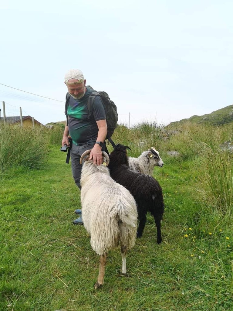 På øya er det en del spælsau på beite. Det så ut som de hadde det riktig fint det ute. Spælsauskinn er å få kjøpt på øya, som forøvrig er uten butikker av noe slag.