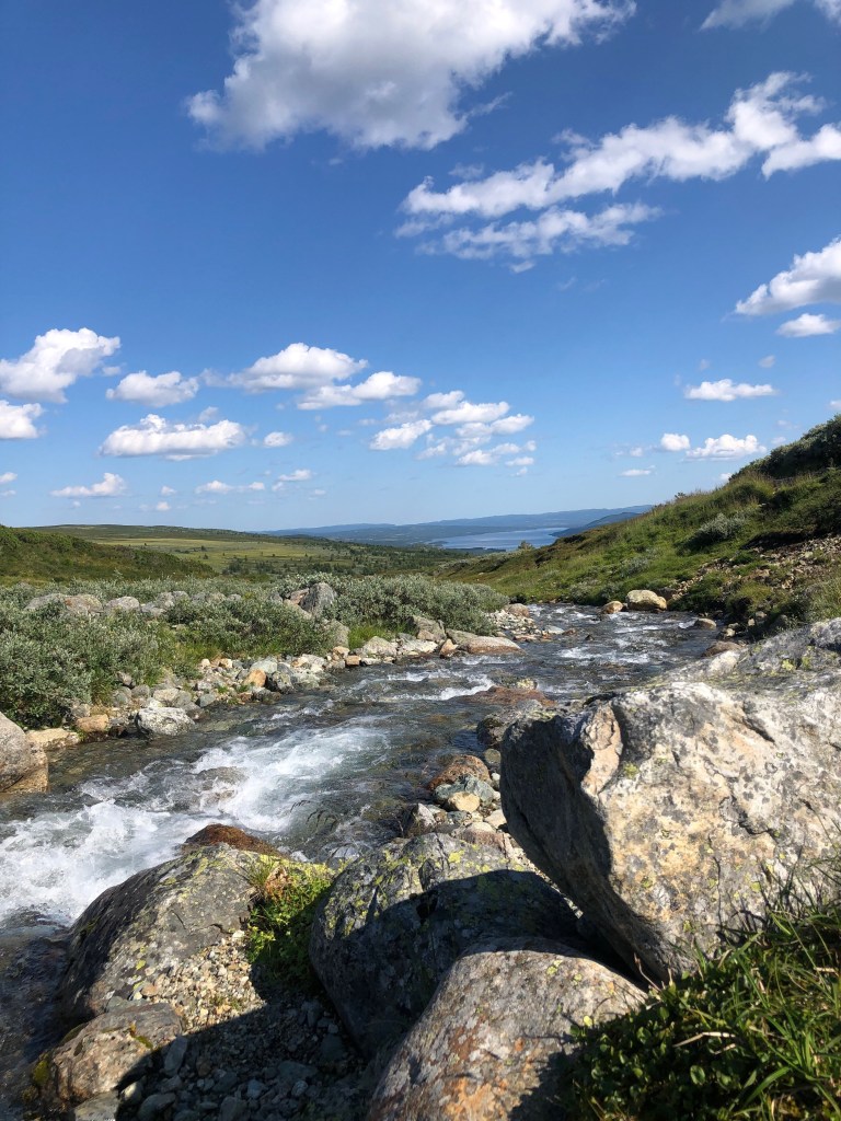 Det har nok regnet mye her i det siste for det var liv i elva som renner langs den nedre delen av stien. På turen ned var det deilig å kjøle ned tærne i det kalde fjellvannet.