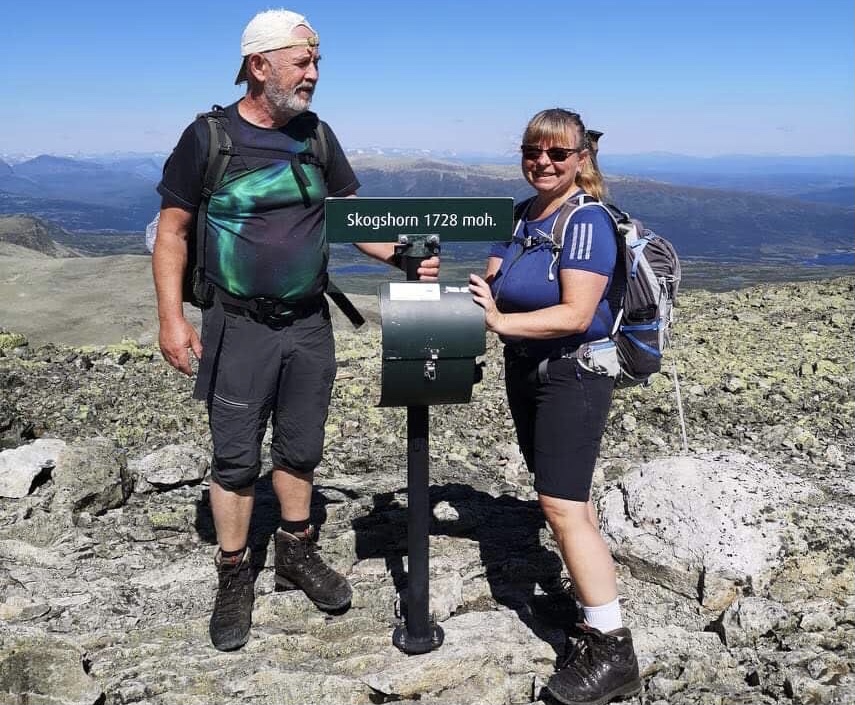 Jeg skrev i går at planen var en fjelltur, og det ble det virkelig! Det er mange topper her i Hemsedal, og vi valgte den mest kjente og besøkte, nemlig Skogshorn (1728 moh). Det skjer ofte at vi ikke møter andre når vi er på tur, men slik var det ikke i dag. Det var mange som benyttet dagen til en tur opp dit, men kø-gåing ble det ikke.