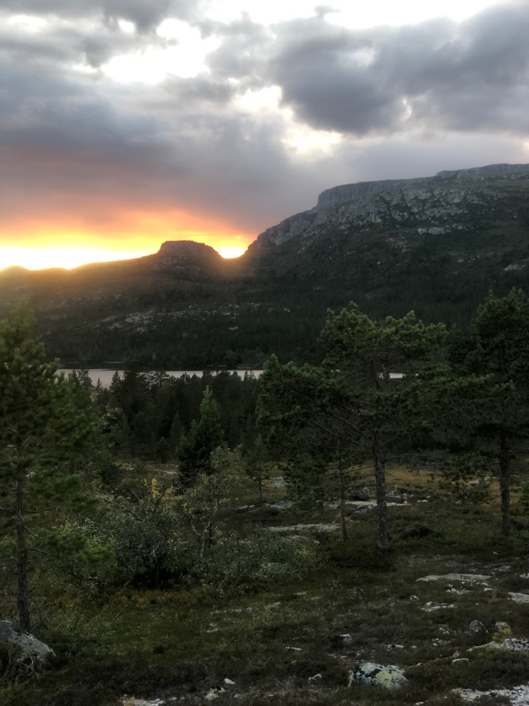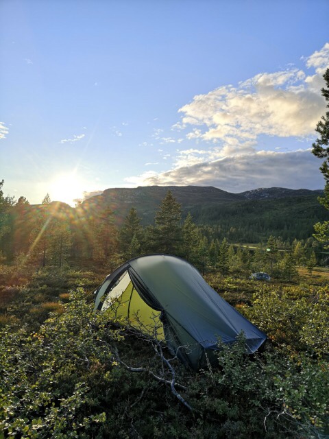 Nå er teltet satt opp og middagen spist. Sola er på vei ned, så da er det klart for en god natts søvn.