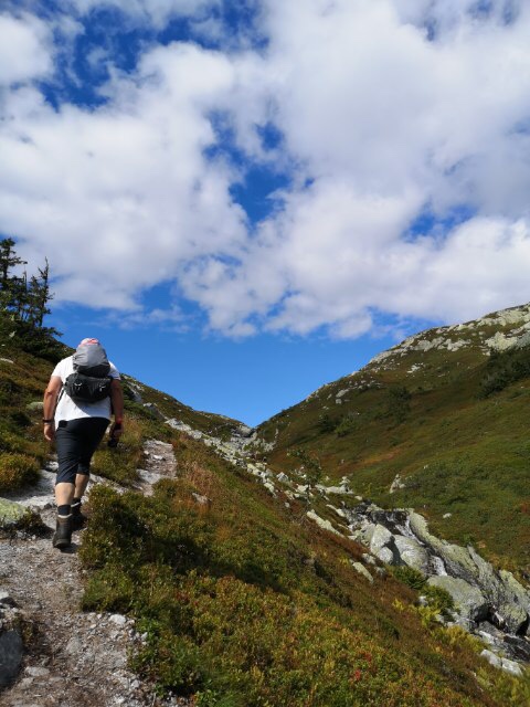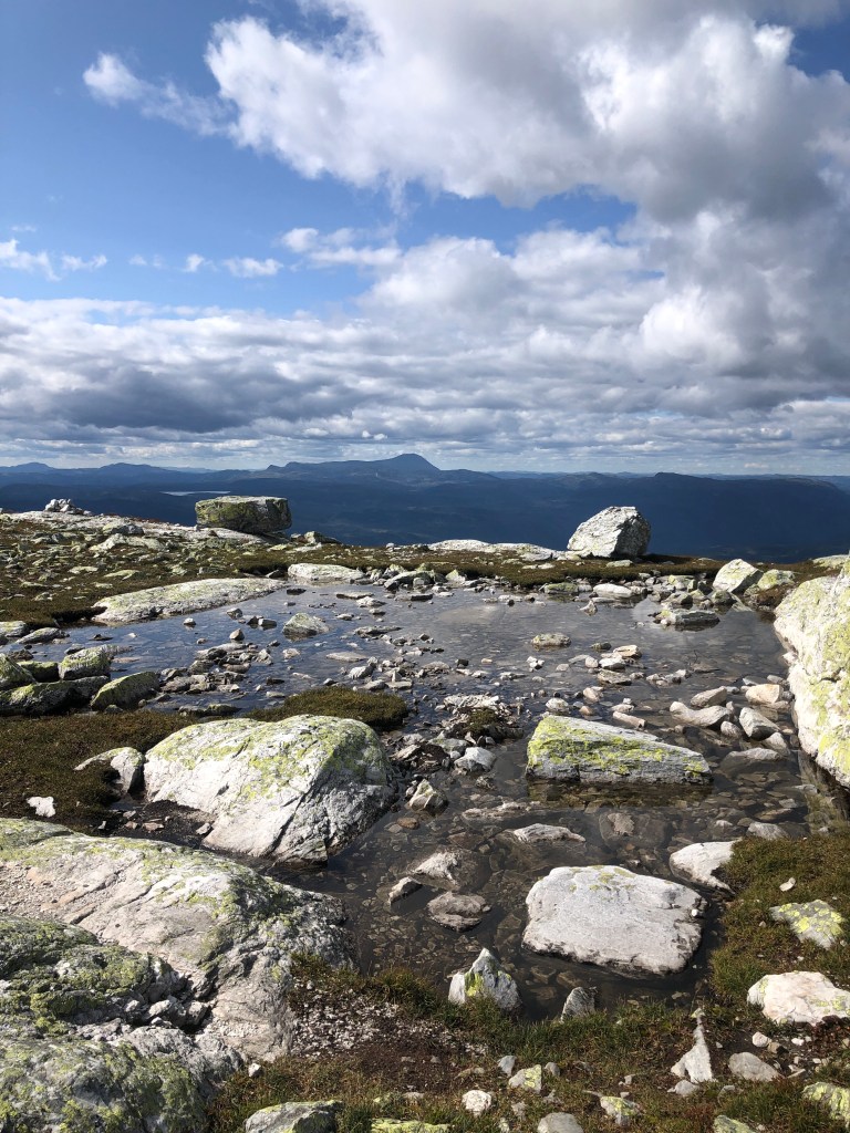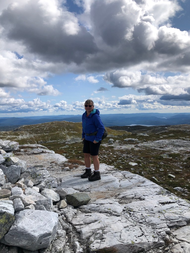 Oppover gikk vi på fin steinete sti langs Langedalen, før den siste litt bratte oppstigningen mot selve toppen, som ligger på 1342 moh.