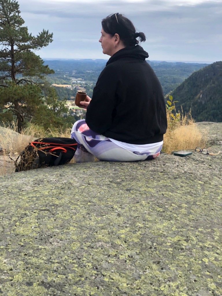 Fint å sitte der på toppen med niste og kaffe før turen ned igjen.