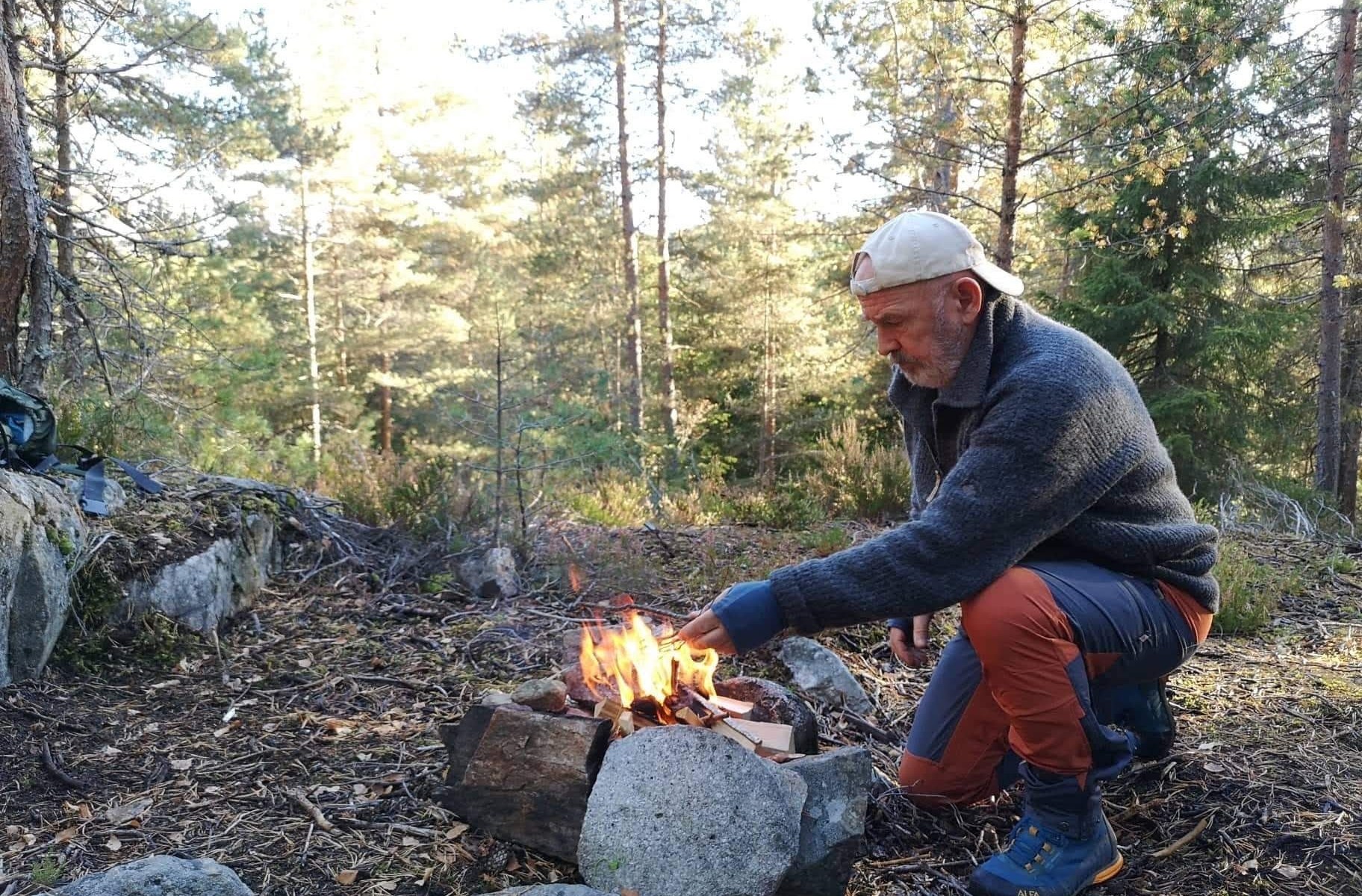 Stoppet ved bålplassen jeg brukte mye sist vinter og fyrte opp et lite bål. Det første etter at årets bålforbud ble opphevet 15. september.