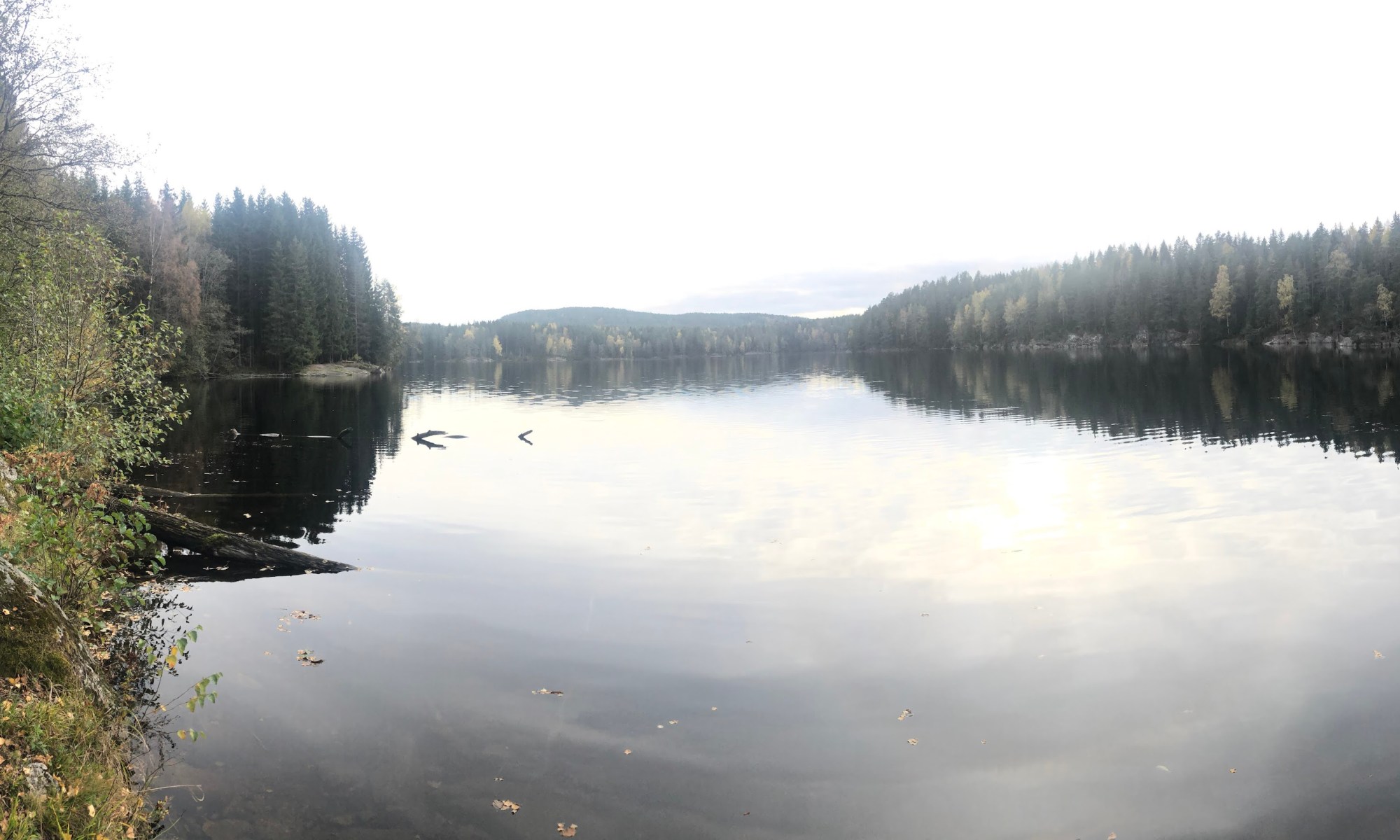 Etter litt gåing på skogsbilvei var jeg nede ved Nøklevann. Der tok jeg av fra veien og gikk på sti i varierende terreng langs østsiden av vannet helt opp til nordenden. Litt knotete å ta seg frem enkelte steder, men kom frem uten store problemer.