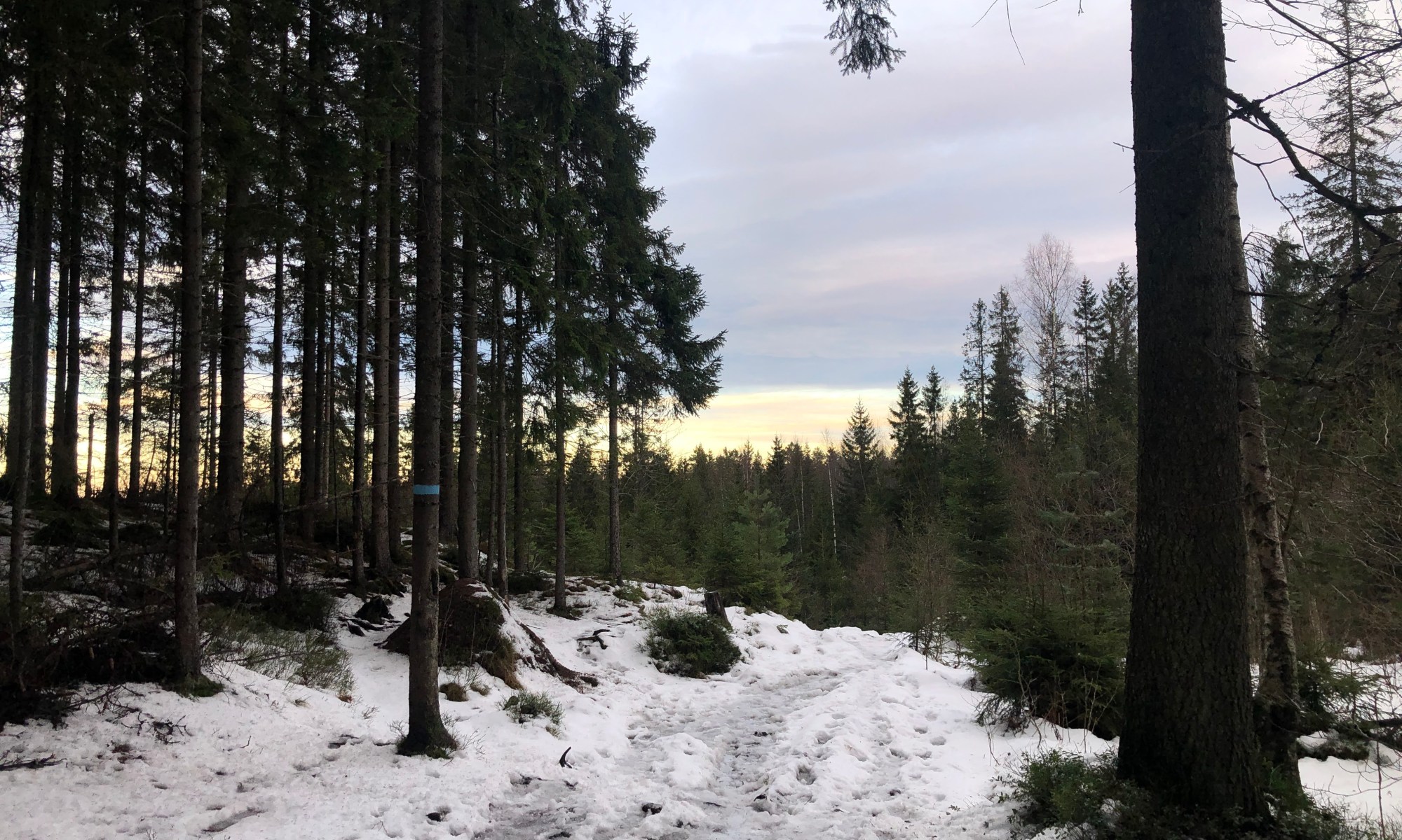 Ved sørenden av vannet kom vi inn på blåsti. Det er litt bratt den første delen opp mot Bjønnåsen, men det var snøfritt og greit å gå der i dag.