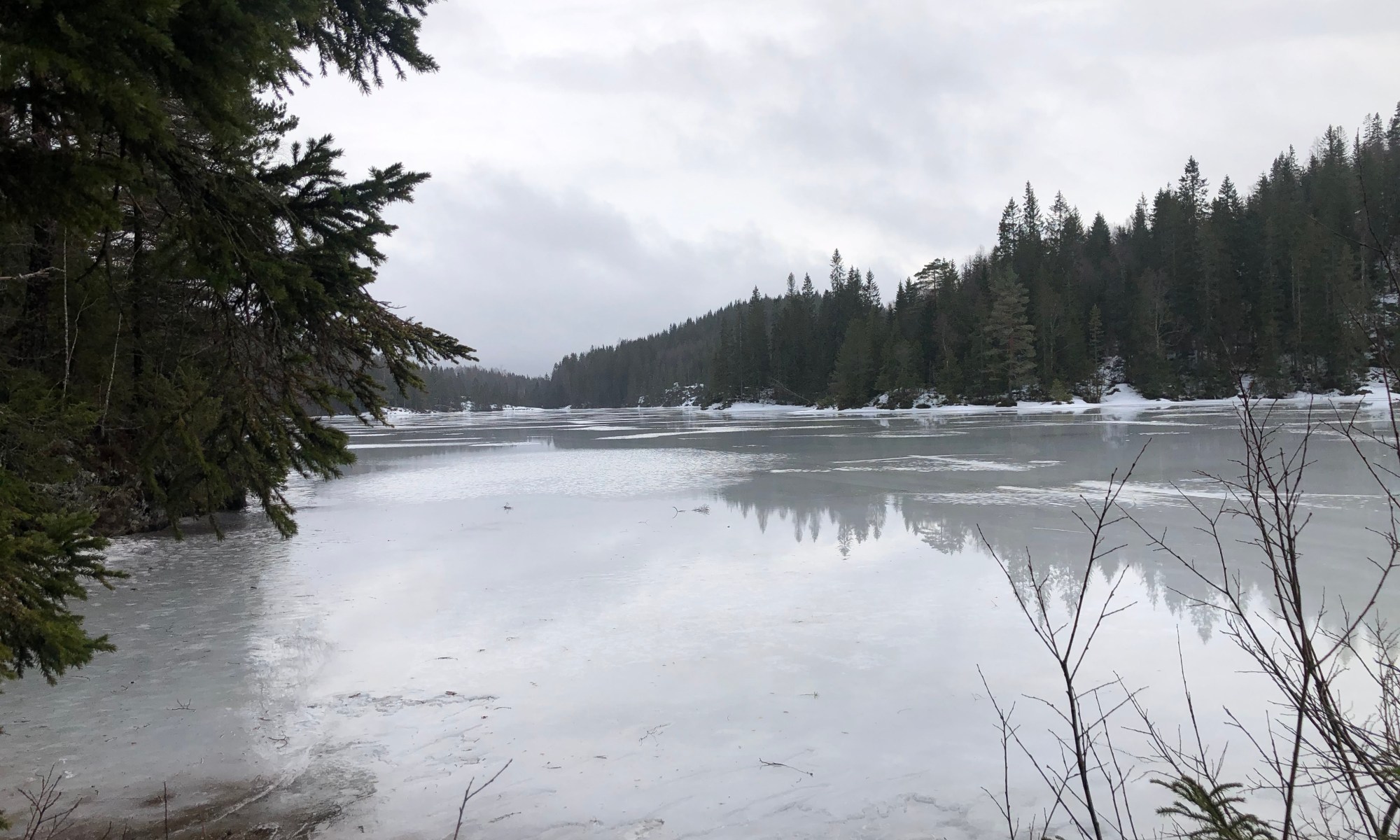 Det har vært mildvær noen dager nå, og enkelte steder er det rene vårløsningen. På Halsjøen var det mye overvann på isen.