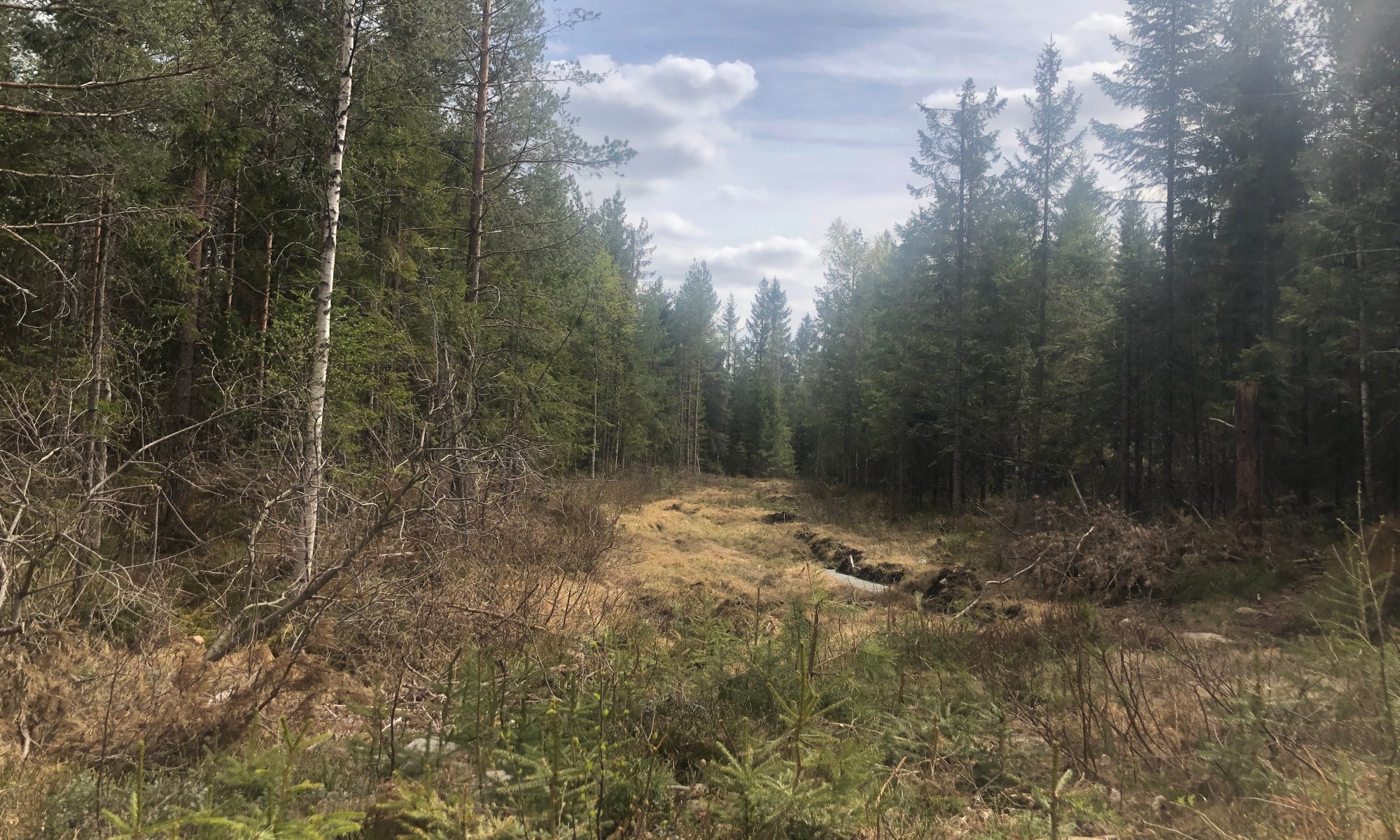 Fra Busterudvangen og tilbake til startpunktet går det mye nedover i fin skog, men også på rester av skiløypene, som fortsatt har litt råtten snø igjen.