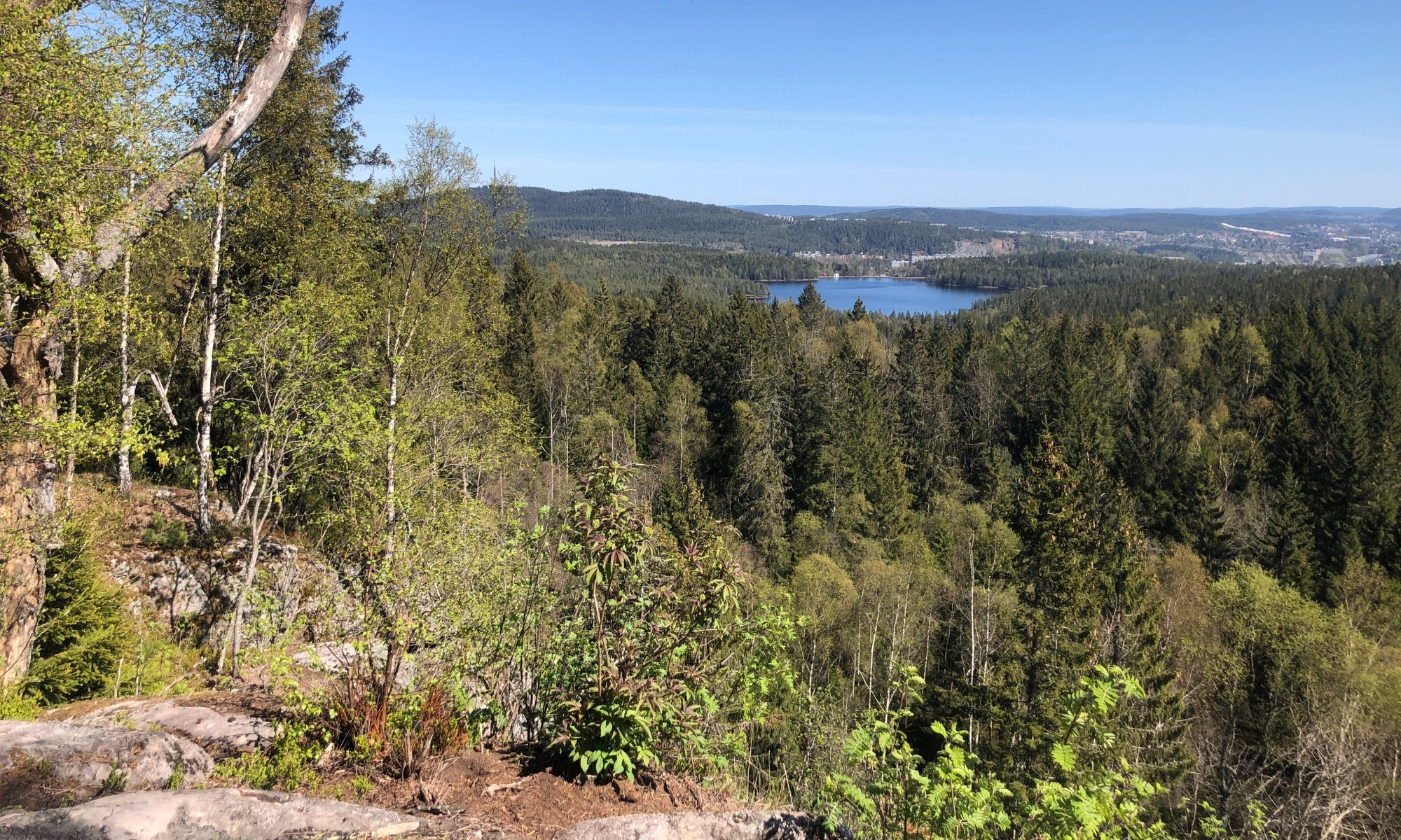 Sammen med turvenninne Gry startet turen fra Tonsenhagen. Vi tok raskt av fra der de fleste går og gikk på umerket sti oppover på østsiden av Årvollåsen. Kom inn på blåsti da vi nærmet oss toppen, og der var det flere turgårere på stien innover mot Ole Høilands hule. Hyggelig det at folk er ute og går. Jeg syns imidlertid ikke det er like hyggelig å møte syklister på stiene. Særlig el-sykler på stiene synes jeg ikke er OK.