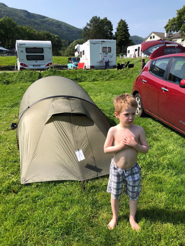 Den natten lå Rolf Andreas, Fredrik og jeg i telt på Lone camping. Minstemann var på besøk hos besteforeldrene her i Bergen.