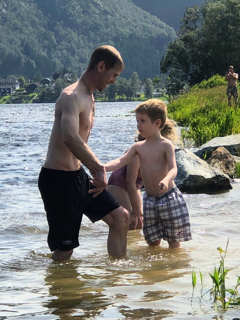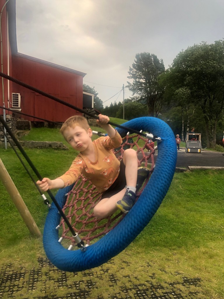Plassen ligget rett ved vannet, og her var det fin lekeplass for på en på 5 år.