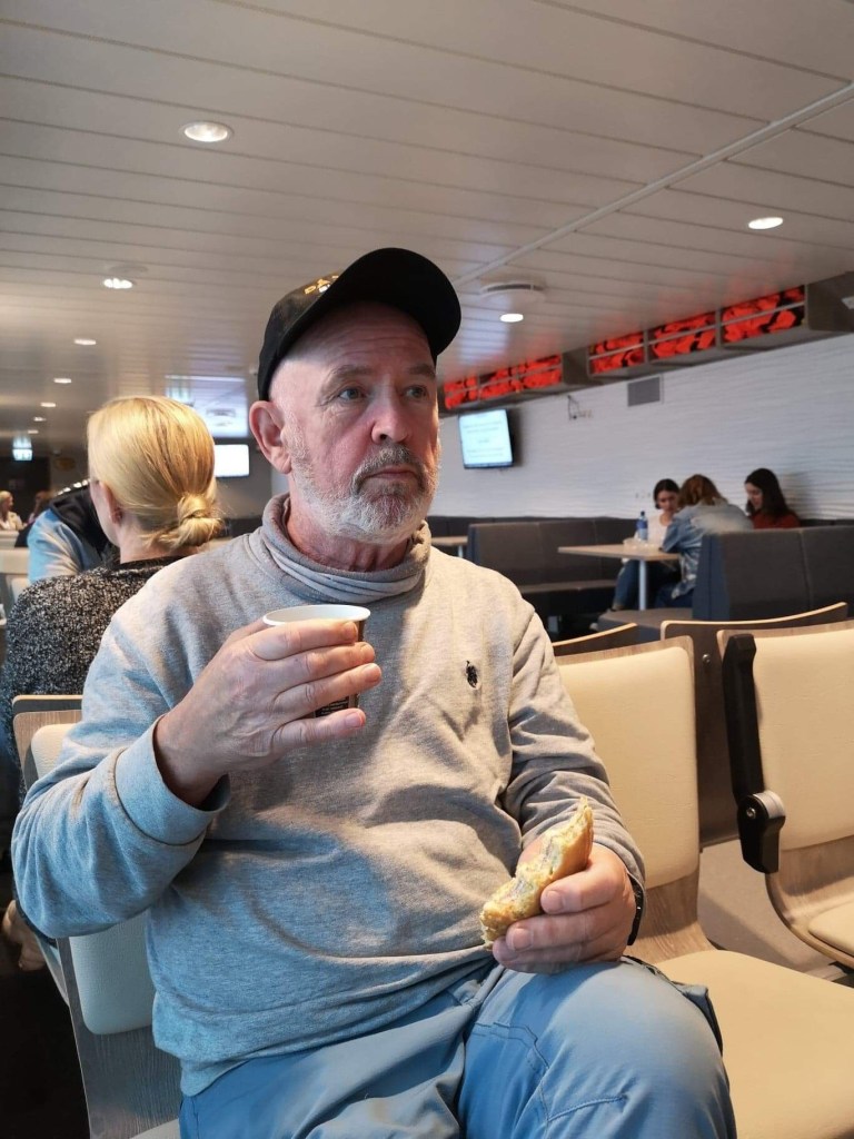 I løpet av dagen har vi kjørt med 3 ferjer, og der måtte vi selvfølgelig spise svele!