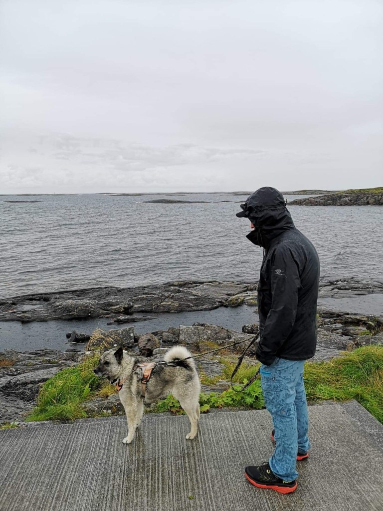 I løpet av dagen har vi flyttet oss fra Ulsteinvik, og 2 fine dager der hos Victor, Anita og Arne Inge, til et sted mellom Orkanger og Trondheim. Det har regnet kraftig i hele dag. Eneste gangene vi hadde oppholdsvær var i tunnelene!