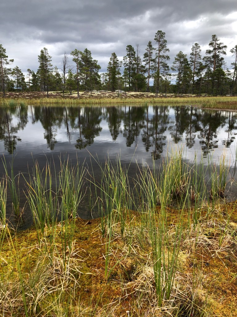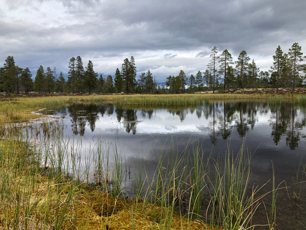 Etter ca 7 km fant vi en fin plass hvor vi har satt opp telt ved et lite tjern.