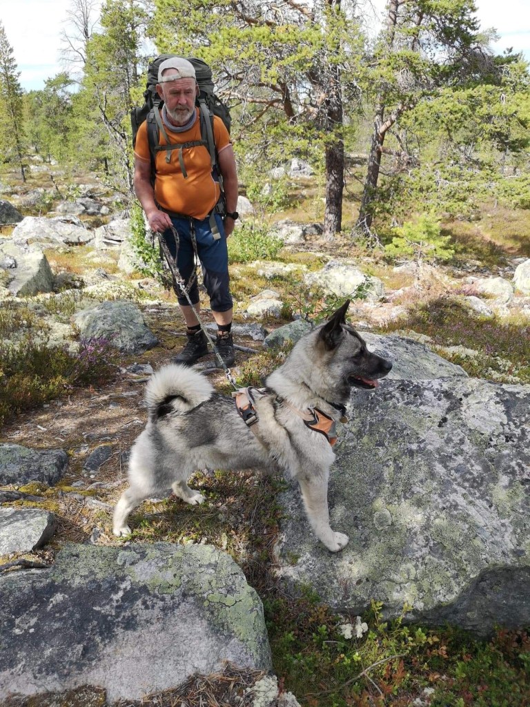 Vi hadde strålene varmt vær på turen i dag. Underveis gikk vi forbi noen små tjern som vi stoppet ved for å fylle vannflaskene, og Tara fikk vasset litt.