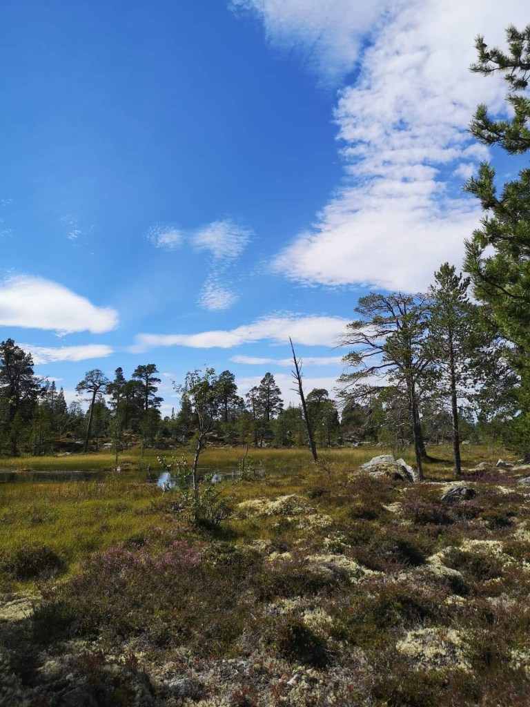 Vi startet over tregrensa, men kom snart ned i krattskog og etterhvert fine myrområder.