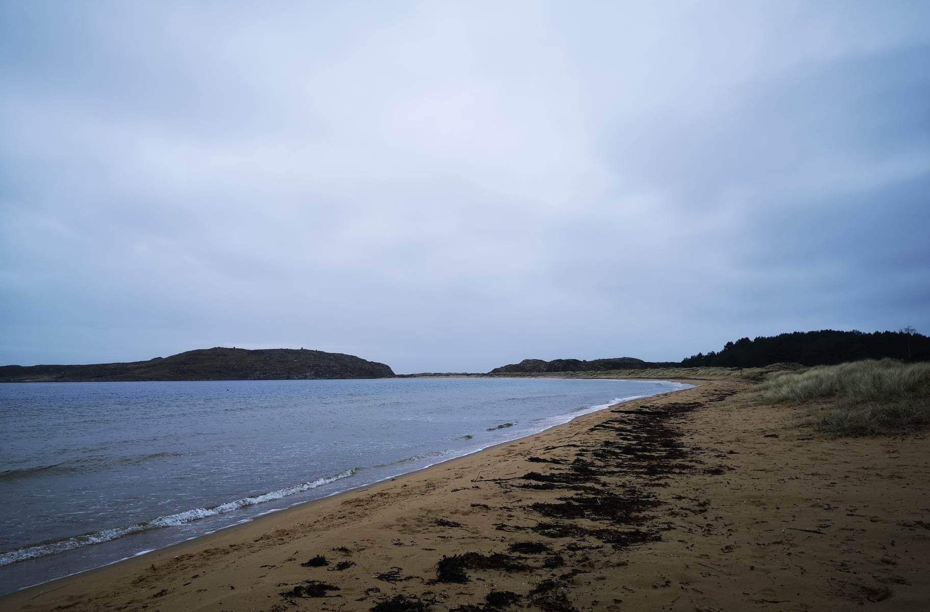 Det ble en sen start på dagen, men ut må vi jo, så valget falt på en liten tur mellom Lomsesanden camping og Loshavn. Jeg har vært i Loshavn før, men har ikke gått denne turen. Startet fra campingen. Fin sandstrand ved sjøen her, flott å se og høre bølgene! Det var mildt og fint i dag, litt grått. Det har regnet ganske bra i natt, så stien var skikkelig bløt. Stien går over Sønderhalsheia, gjennom fin skog, veldig grønt men som sagt, bløtt.