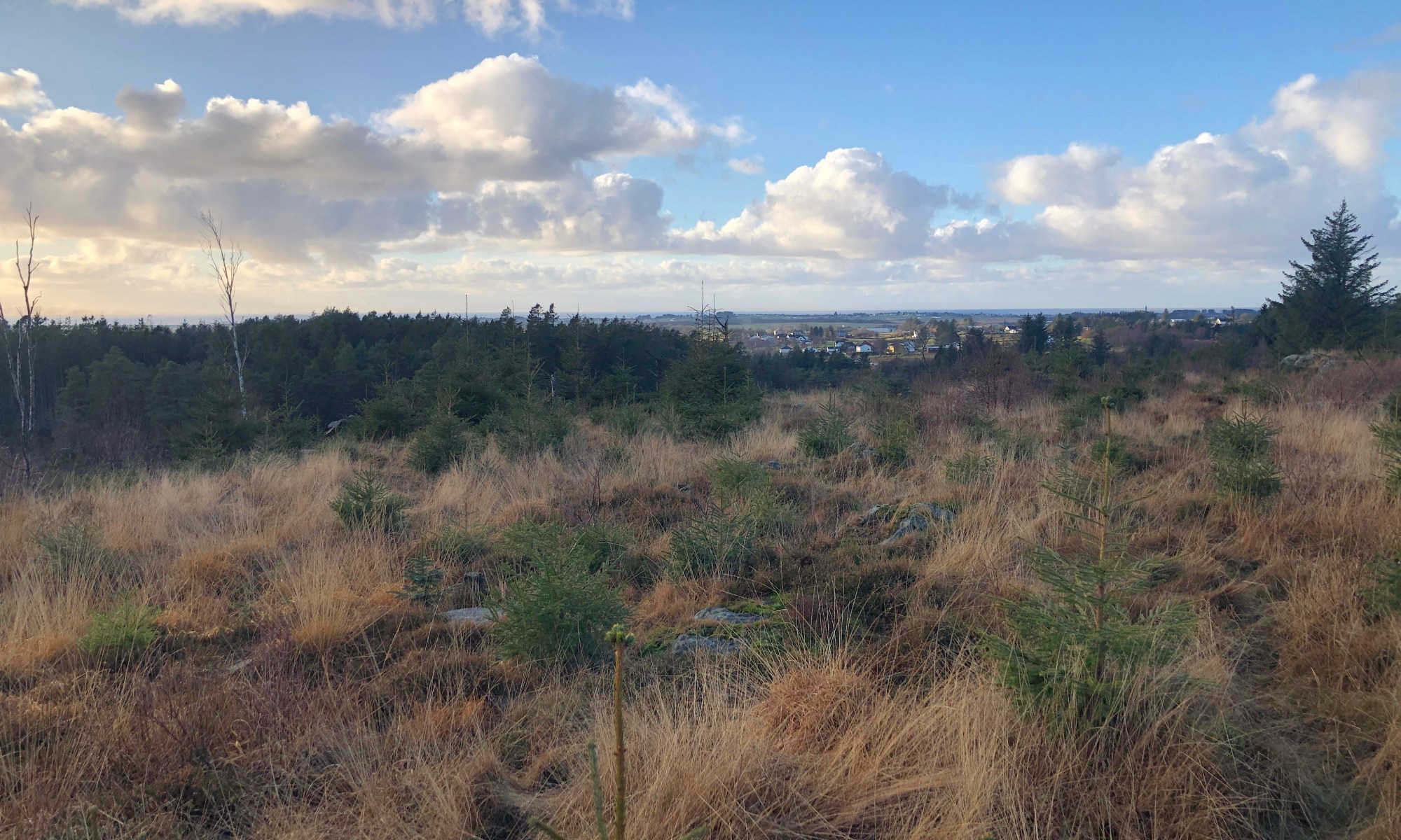 Det regnet før turen i dag, og det regnet etterpå, men mens vi var ute og gikk hadde vi fint vær, og litt sol. Som i går var det Tara og Fredrik som var med meg på tur.Dette var siste dagen før Fredrik måtte tilbake til Bergen. Disse dagene har gått veldig fort, men slik er det når man har det hyggelig. Det ble ikke så lange turen, men vi har naturen rett innpå og etter et par minutter er vi i skogen. Her er Fredrik og Tara på en liten kolle med fin utsikt.
