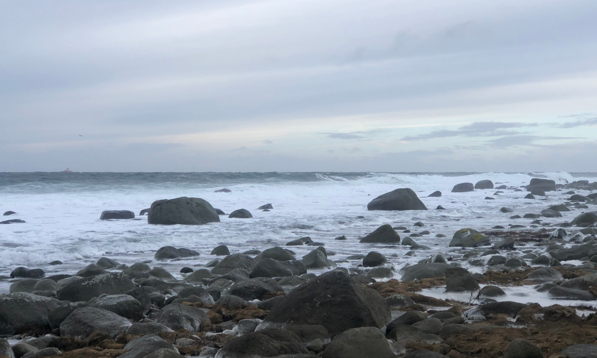 Vi tok så en tur ut på den lange moloen på Borhaug. Her gikk vi i ly av digre steinblokker som har for vinden og sjøen når høststormene står på fra Nordsjøen.