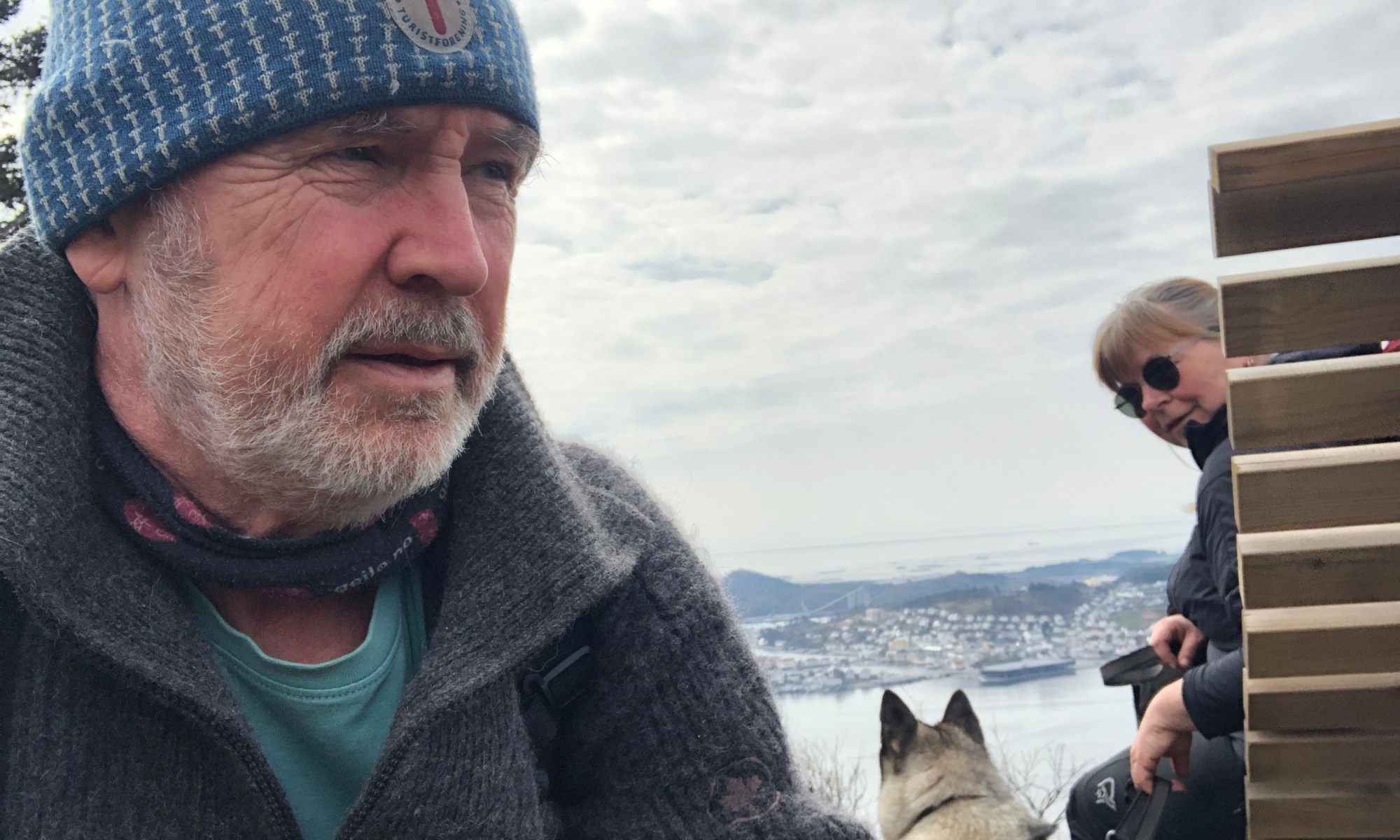 Etter et fint myrområde, gikk vi en kort, men ganske bratt oppstigning den siste biten opp til utsiktspunktet på Knygen (244 moh). Herfra hadde vi fin utsikt i flere retninger, blant annet ned til Lyngdalsfjord, Farsund sentrum, Listahalvøya og langt utover i skjærgården og Nordsjøen.