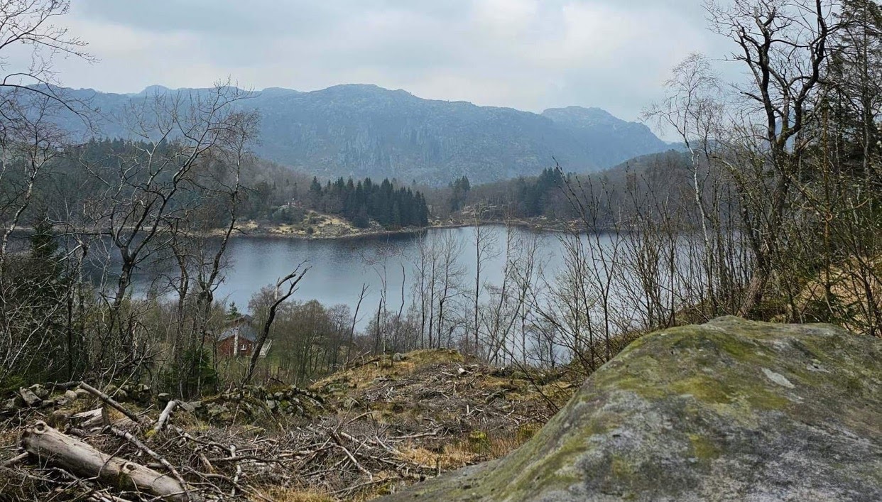 Det var meldt overskyet vær i dag, og det ble det stortsett, men glimrende turvær. Vi staret helt nede ved sjøkanten, og gikk bratt oppover i terrenget på kjerrevei. Tok etterhvert av fra veien og gikk inn i en fin skog, utrolig grønt og fint her!