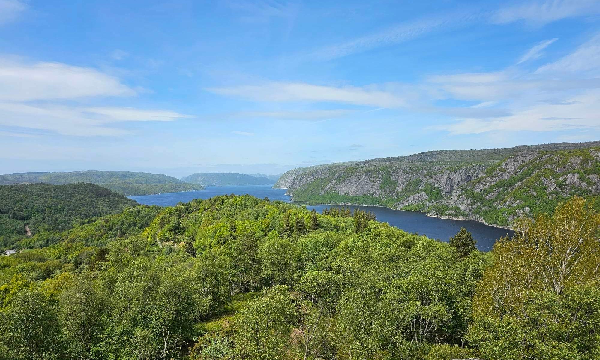 Underveis hadde vi flere utsiktspunkter. Først tok vi en avstikker opp til Tredalsfjellet med utsikt helt inn i enden Lyngdalsfjorden.