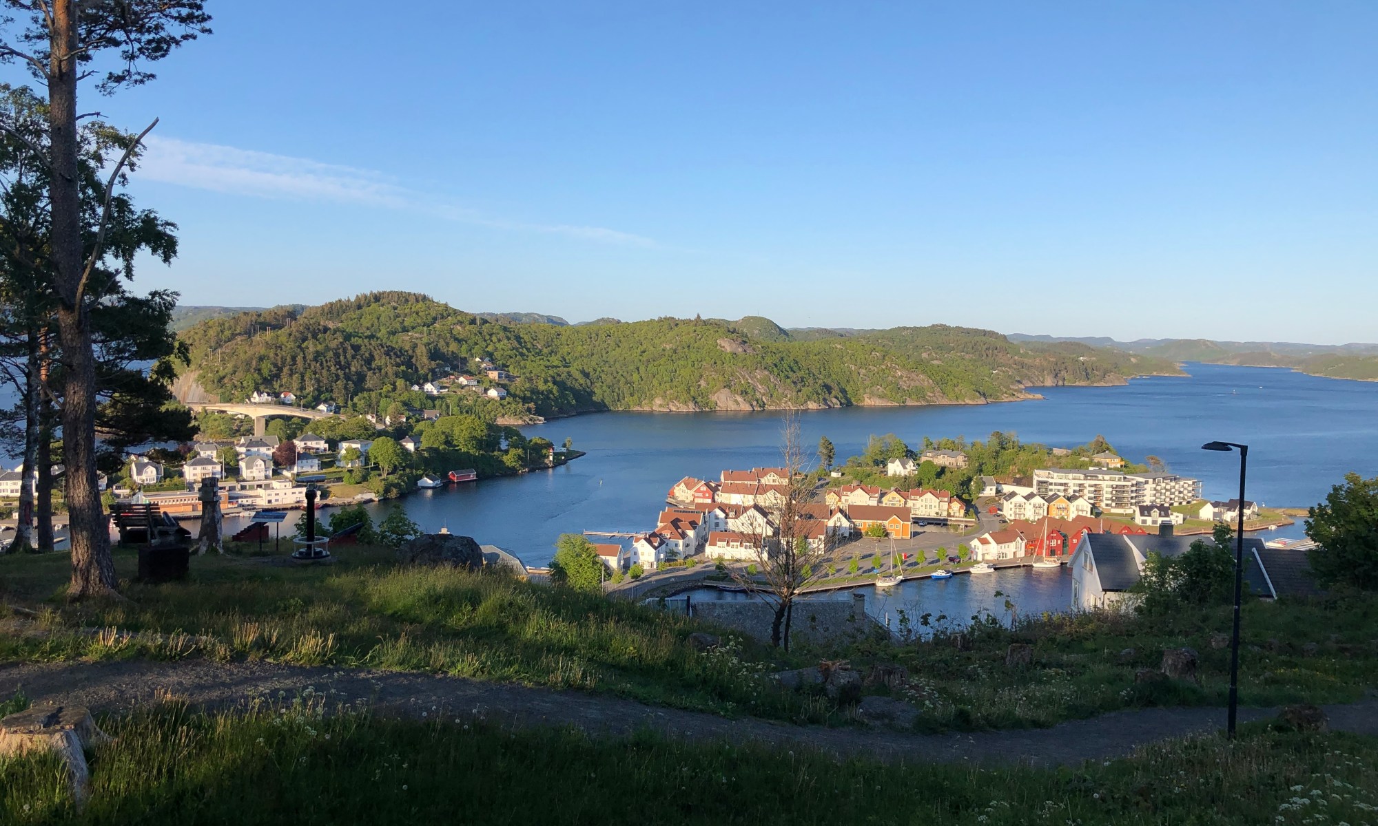 Turer trenger ikke å være planlagt. I kveld skulle vi en liten handletur til Farsund, vår nærmeste by. Været var fint, og vi bestemte oss for å ta en tur oppover i Farsund for å få litt oversikt over denne flotte sørlandsbyen. Gatene her går stort sett oppover eller nedover.