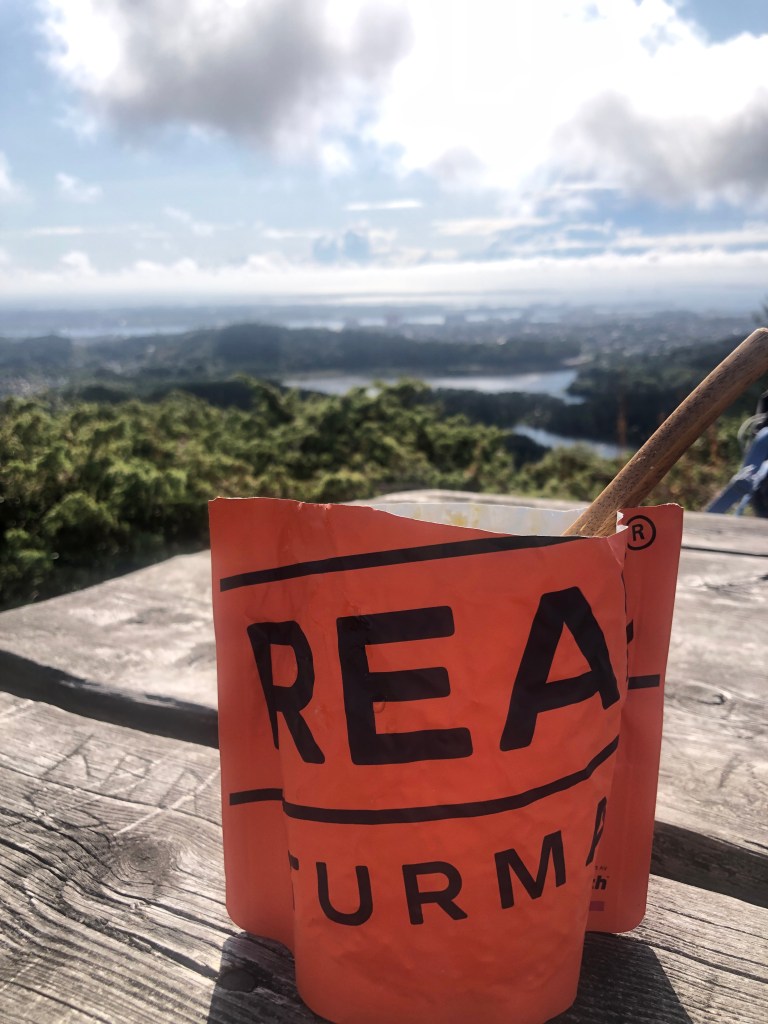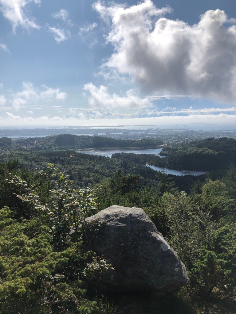 Smakte godt med middag der oppe med utsikt ned mot Haugesund og videre ut i havet.