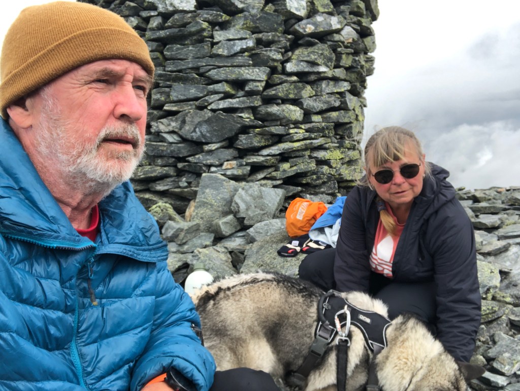 Vi møtte noen som var på vei nedover. De hadde nok stått opp litt tidligere enn vi gjorde i dag. Rett før vi var oppe hadde det sluttet å regne. Da møtte vi et hyggelig par fra Andebu i Sandefjord, hvor jeg har bodd i mange år. De het Heidi og Roar. Hyggelig å prate med dem.