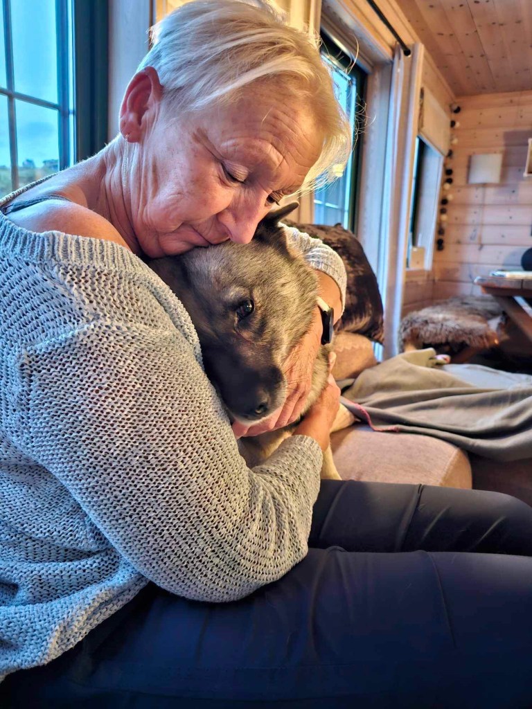 Tara har hatt en fin dag, og sovet i fanget til Tone i kveld.
