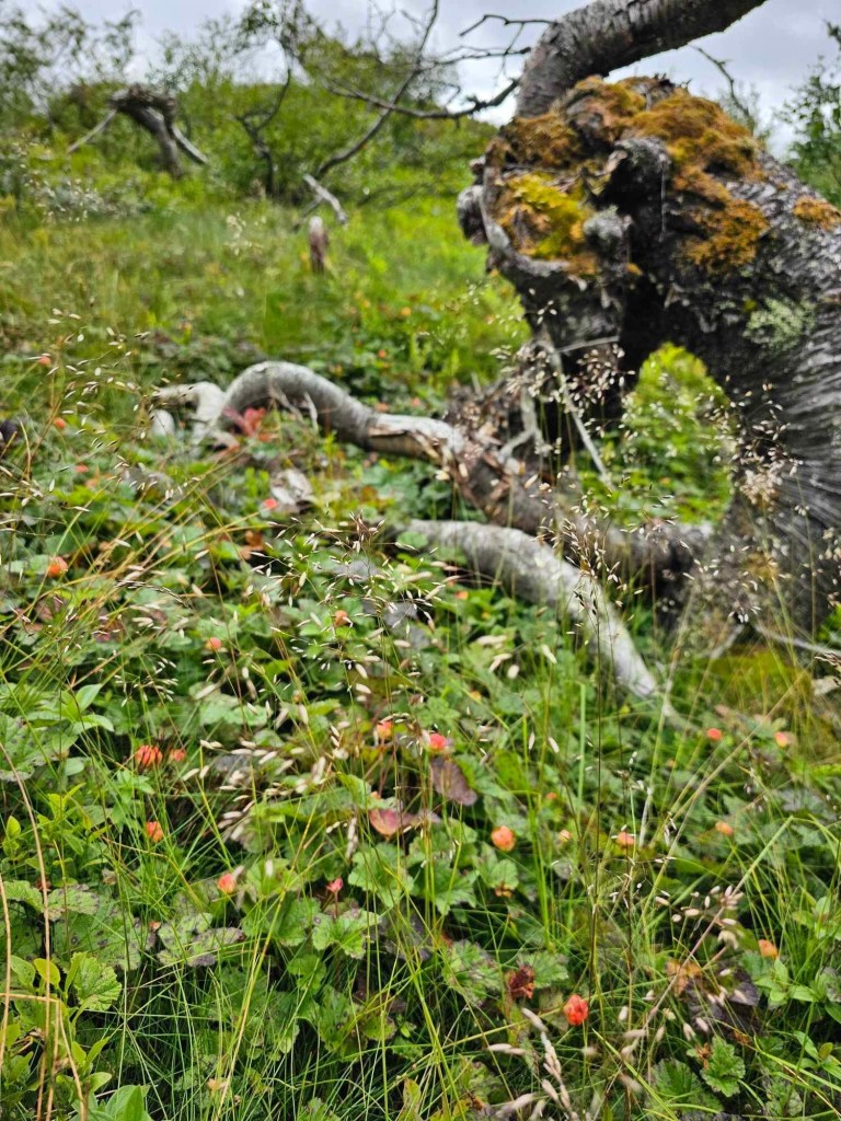 Noen steder passerte vi små myrområder og der var det mye multer. De trenger noen dager til med sol.