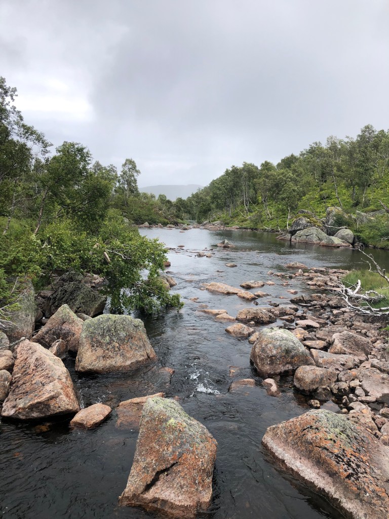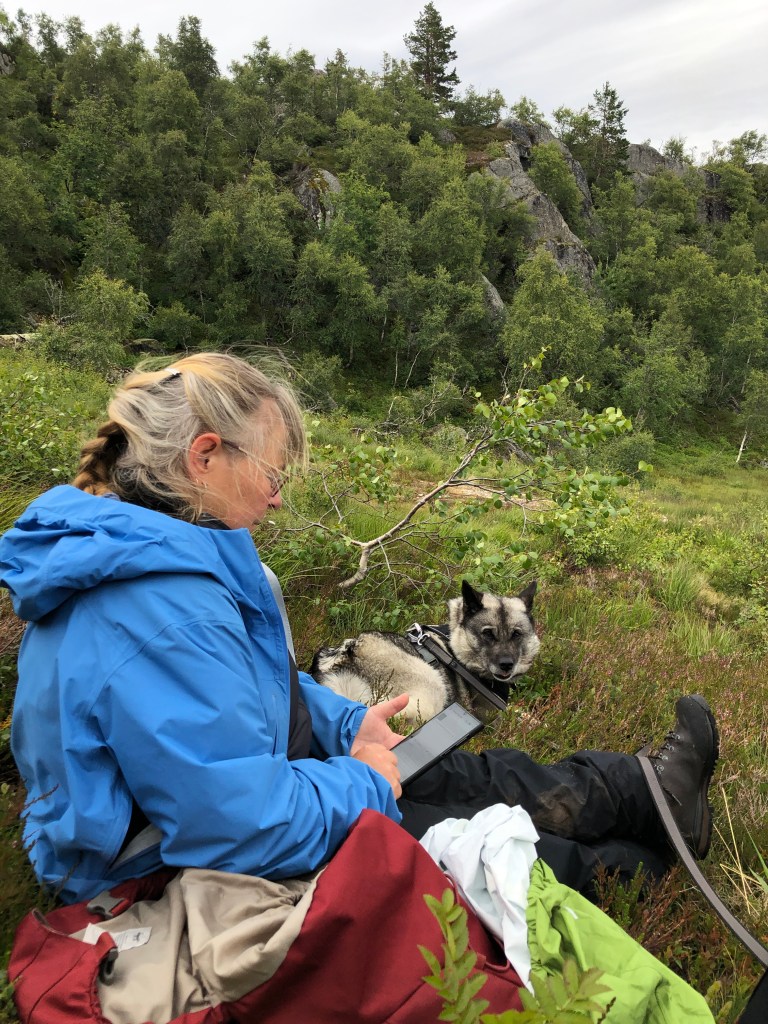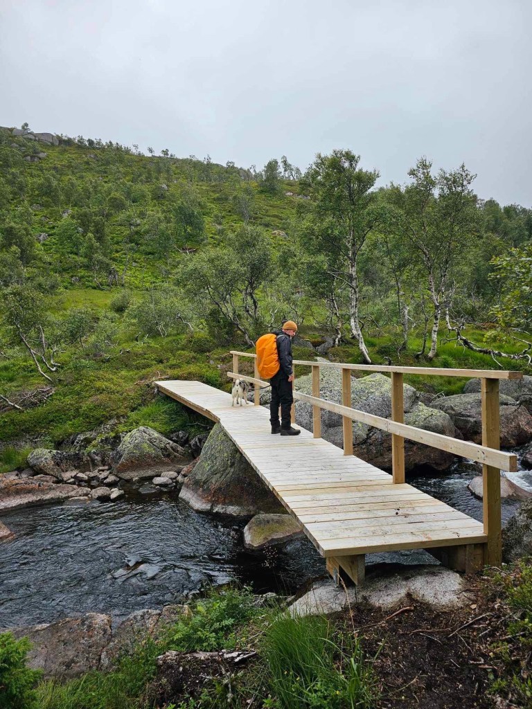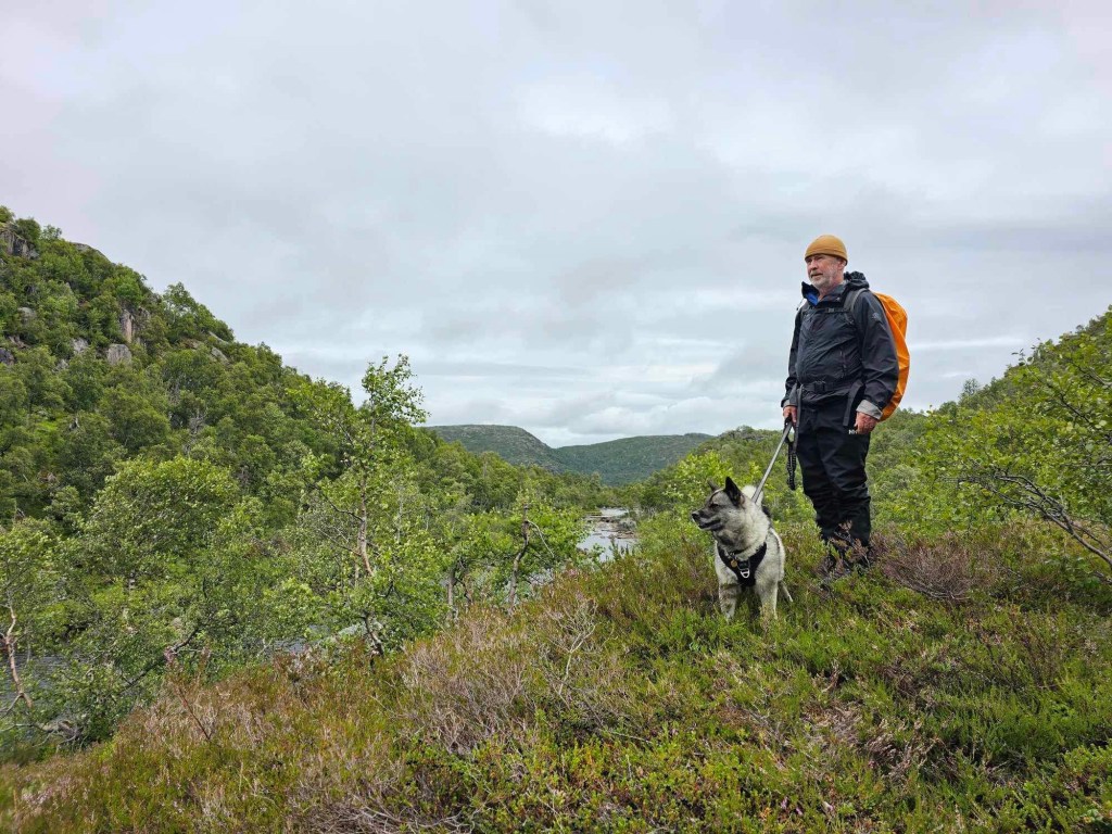 Det ble en liten tur i dag også, stort sett utenfor sti. Vi gikk på skogsbilvei den korte veien til brua over elva nedenfor Grytåtjønn.