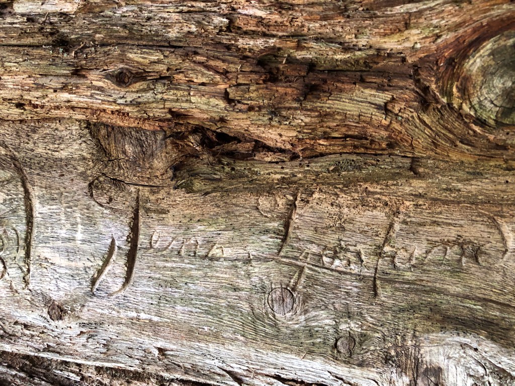 Selv om den er veldig forfalt et det ikke vanskelig å se at det var dyktige håndverkere også før i tiden. Det var også gravert navn, sikkert på brukere, på veggene inne i bya.