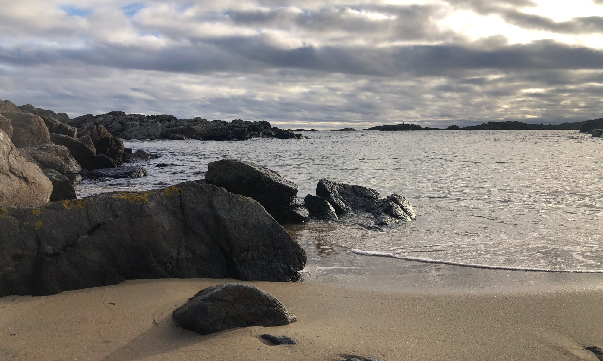 I dag gikk vi stort sett langs strandkanten, men tok en tur opp på en av kollene.